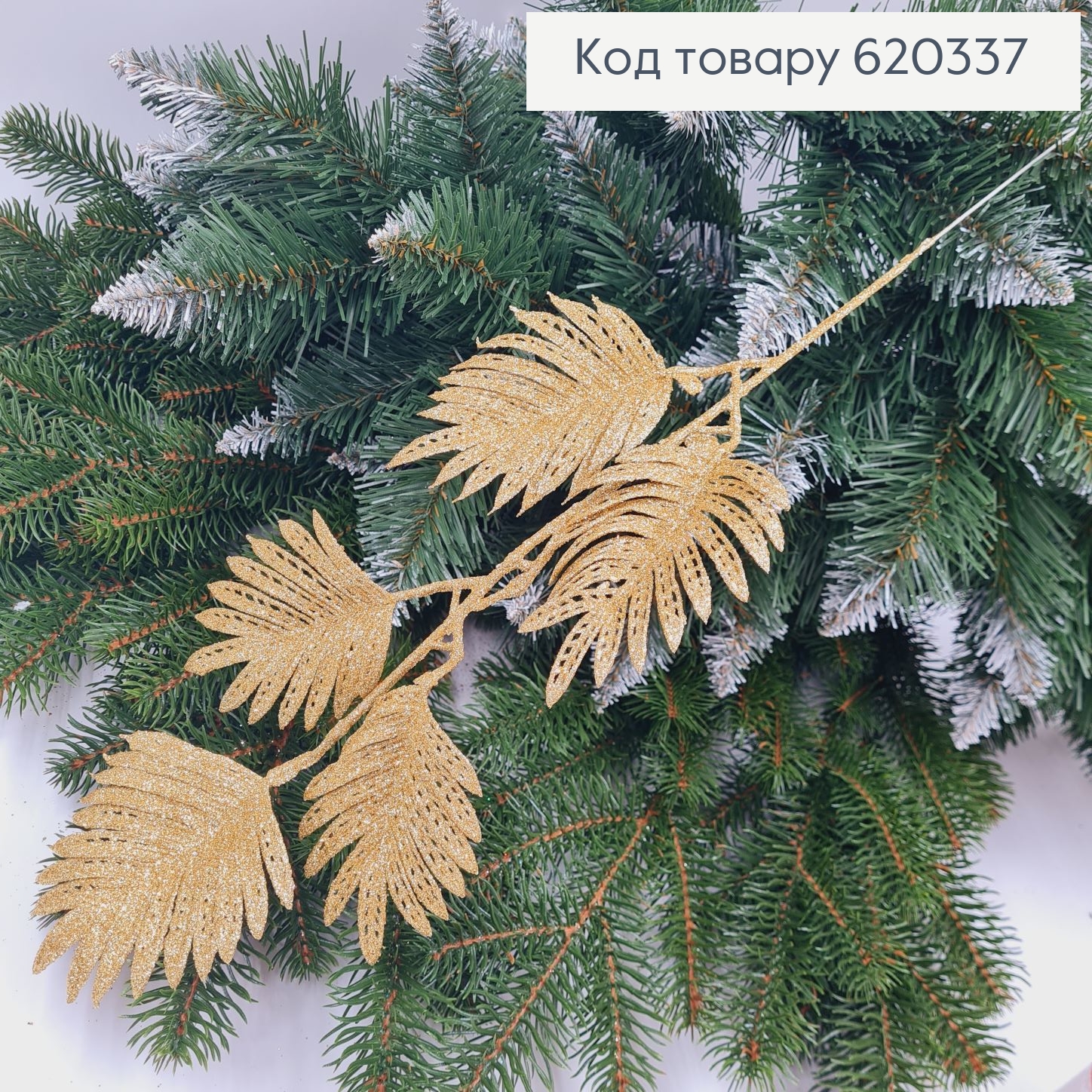 Ветка новогодняя Папороть ЗОЛОТО глитер, 50см