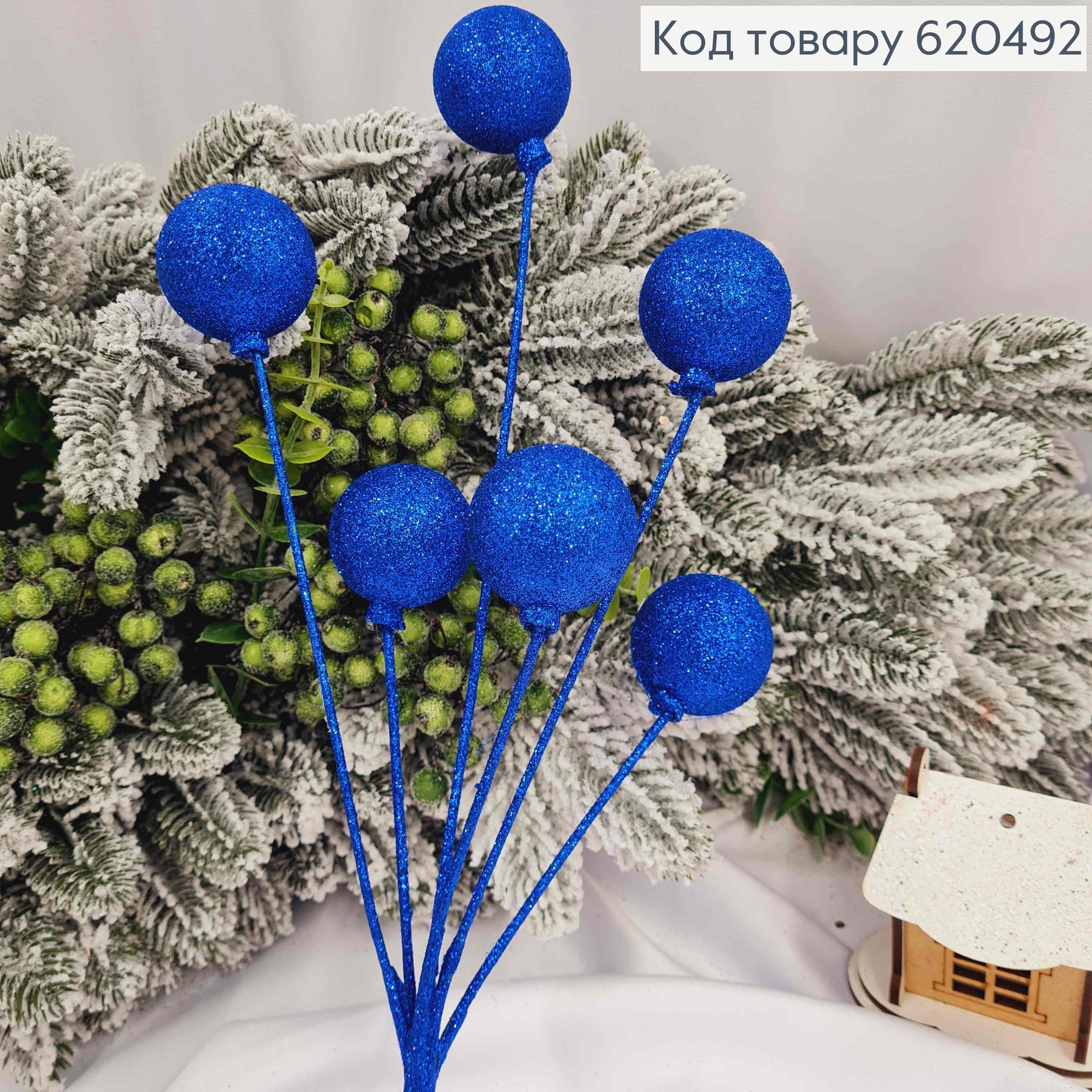 Веточка НОВОГОДНЯЯ, блеск СИНИЕ Шарики, 6шт, 38см