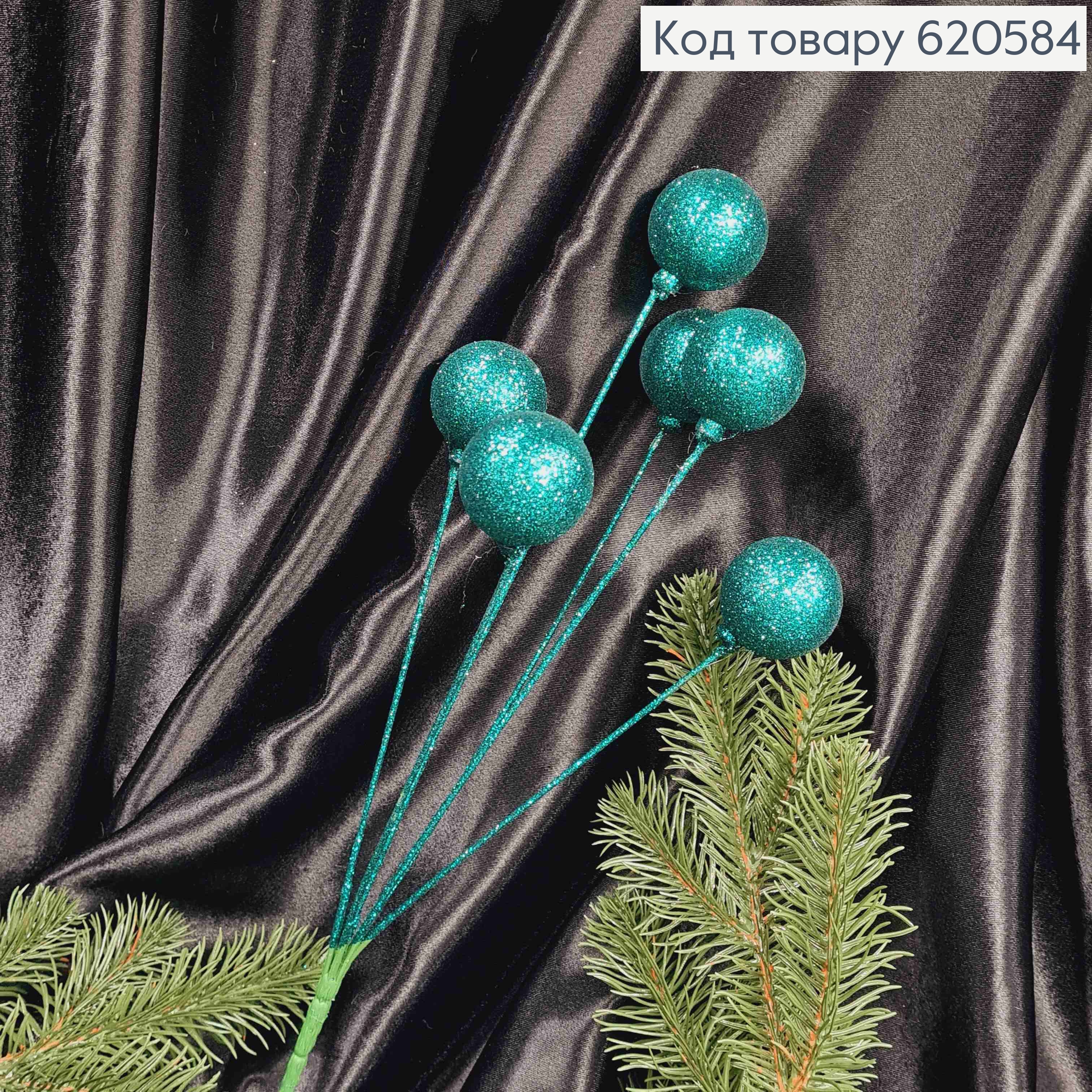 Веточка НОВОГОДНЯЯ, блеск ИЗУМРУДНЫЕ Шарики, 6шт, 38см