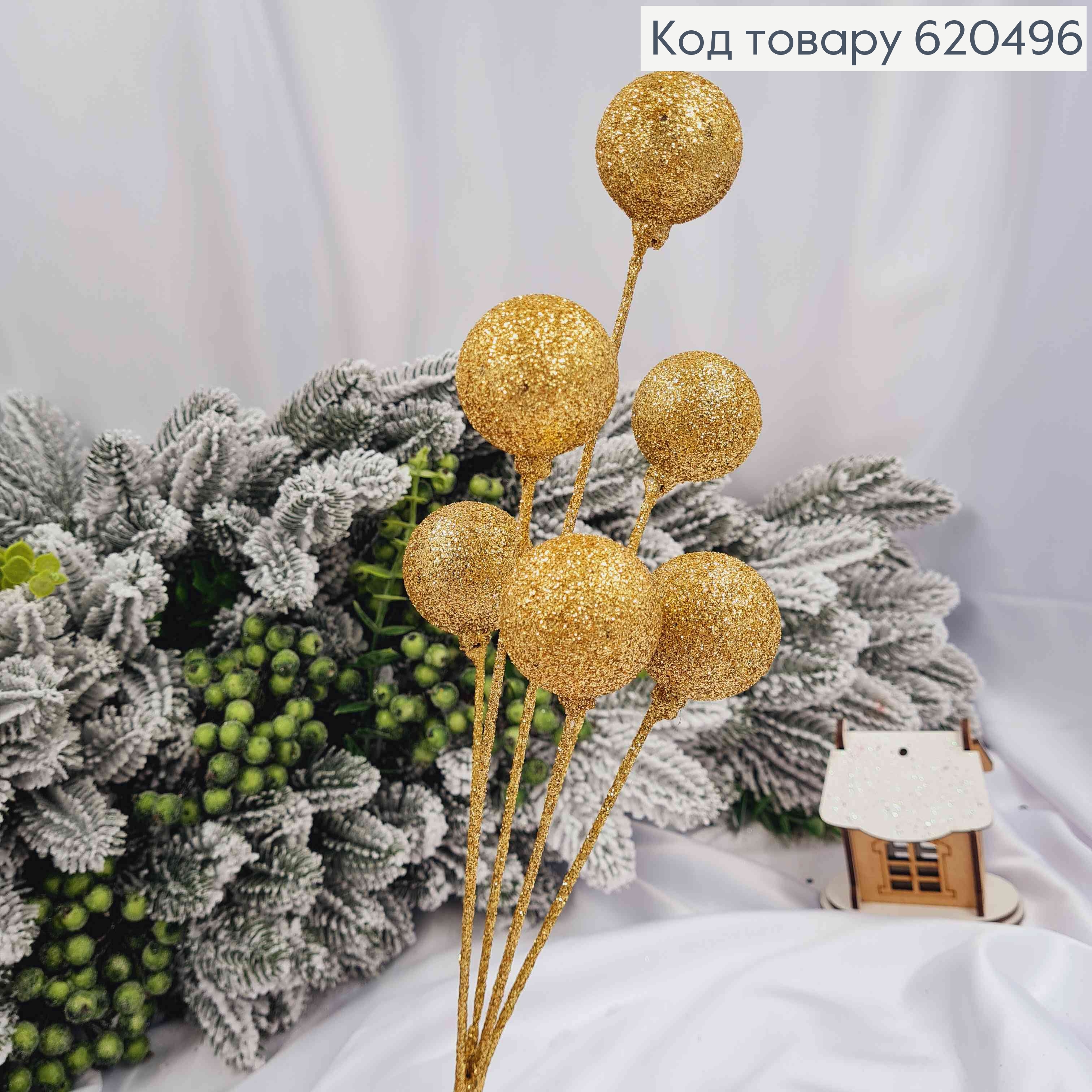 Веточка НОВОГОДНЯЯ, блеск ЗОЛОТЫЕ Шарики, 6шт, 38см