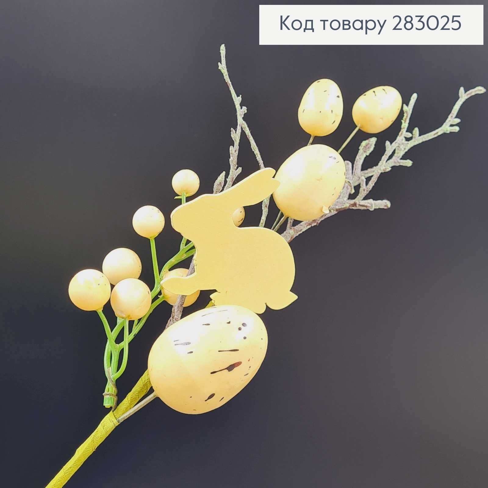 Веточка Пасхальная компазиция ЖЕЛТАЯ 37см с деревьяным зайчиком