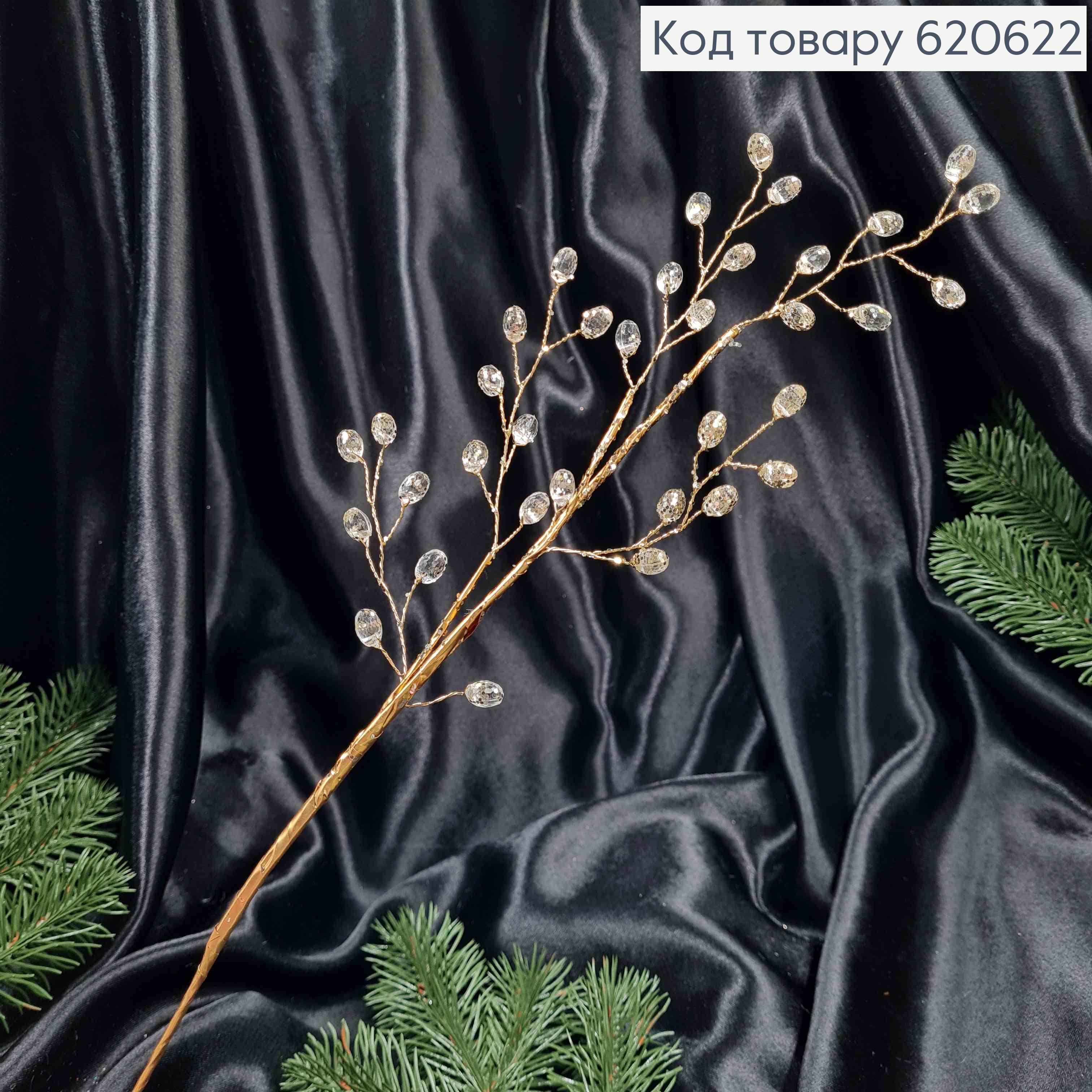 Веточка Золотого цвета с прозрачными бусинками, новогодний декор, металлическая, качественная, длина 37см.