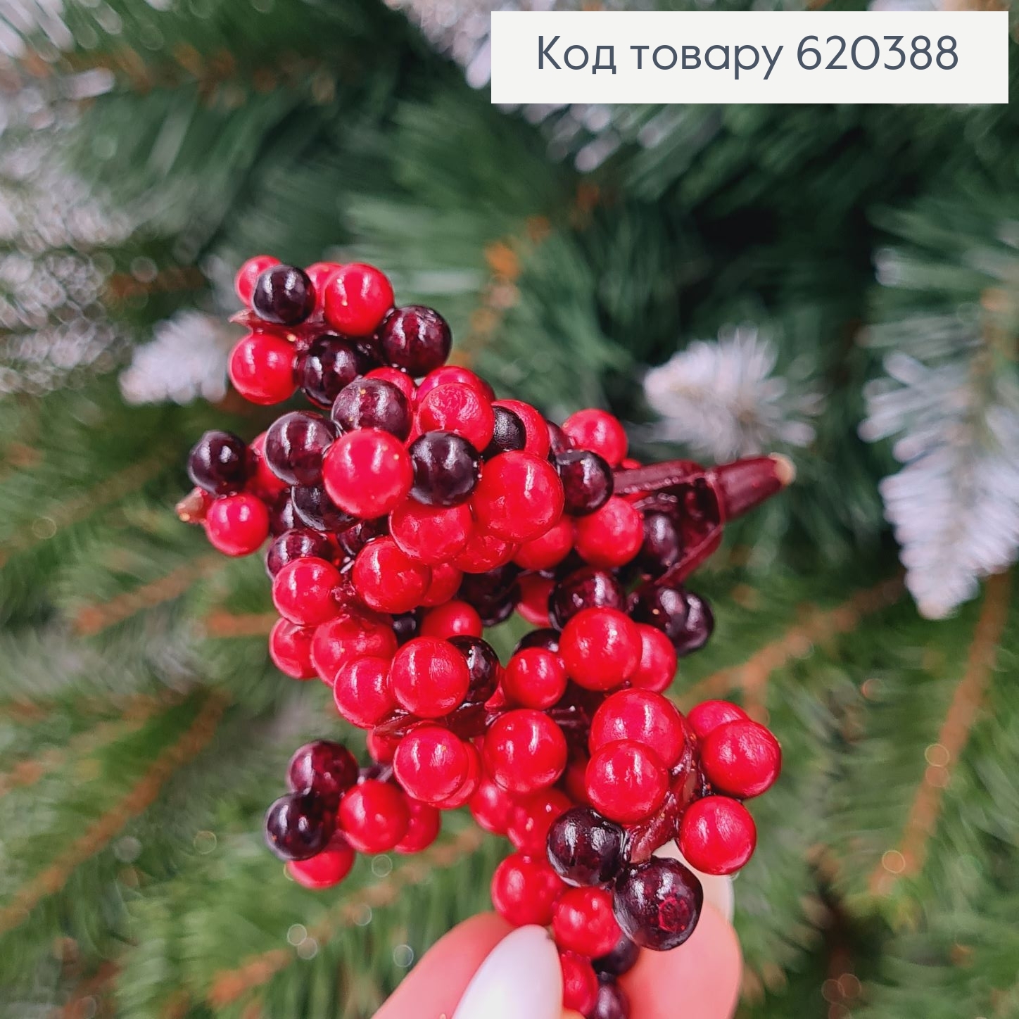Снежная ветка с ягодами, КРАСНОГО цвета, на металлическом стержне, выс 60см, новогодний декор