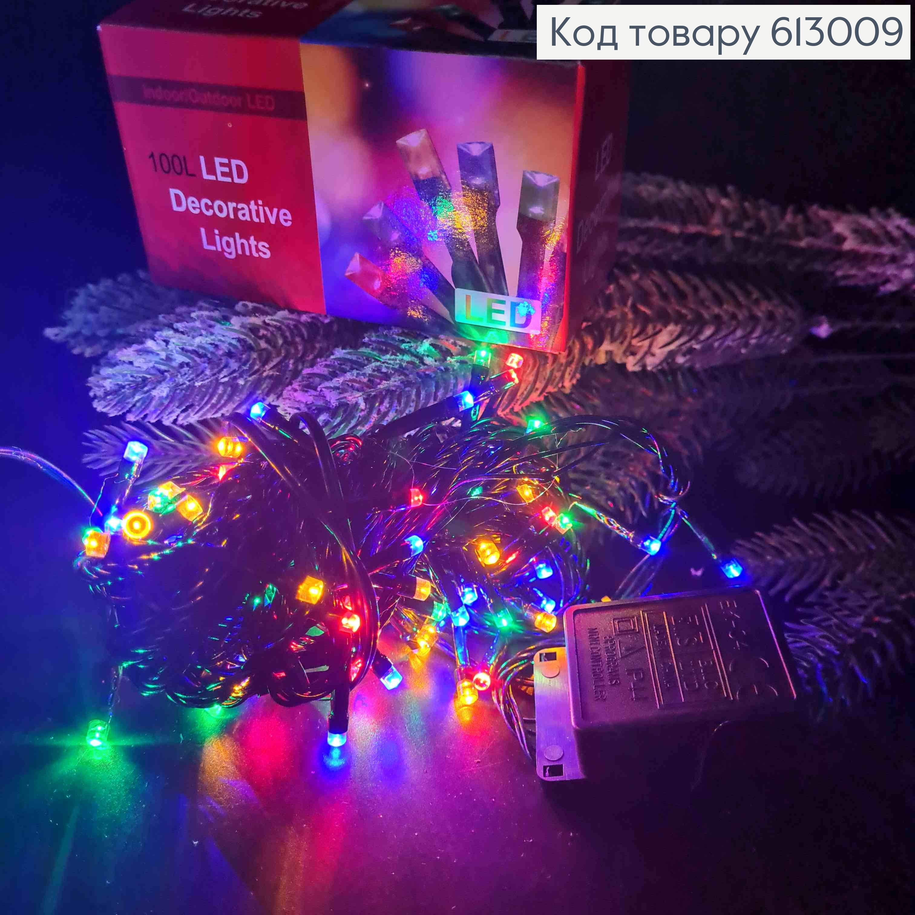 Гирлянда 100 LED 6 м черная проволока цветная