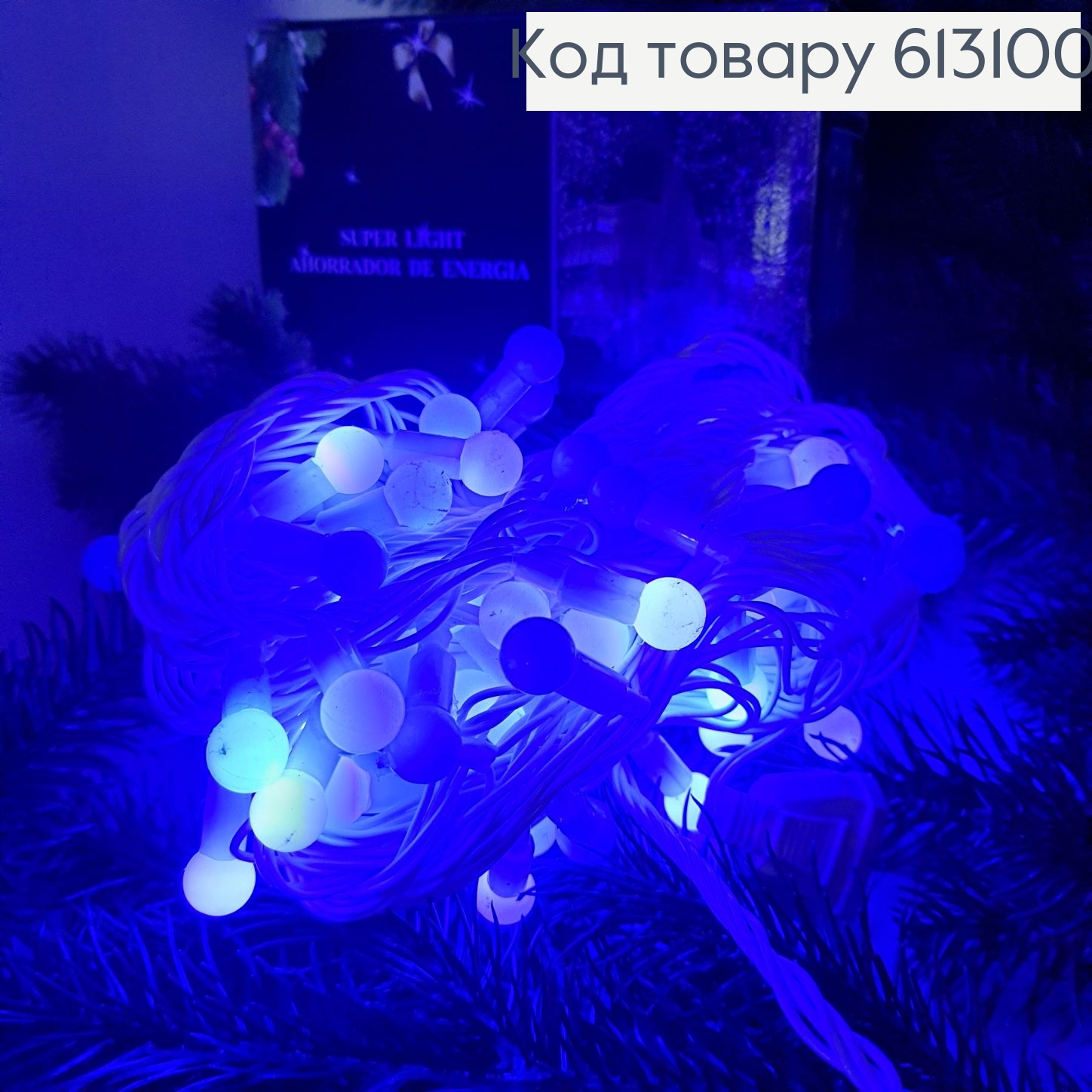 Гирлянда шар 10 мм белая проволока 9 м 100 LED синяя(с удлинителем)