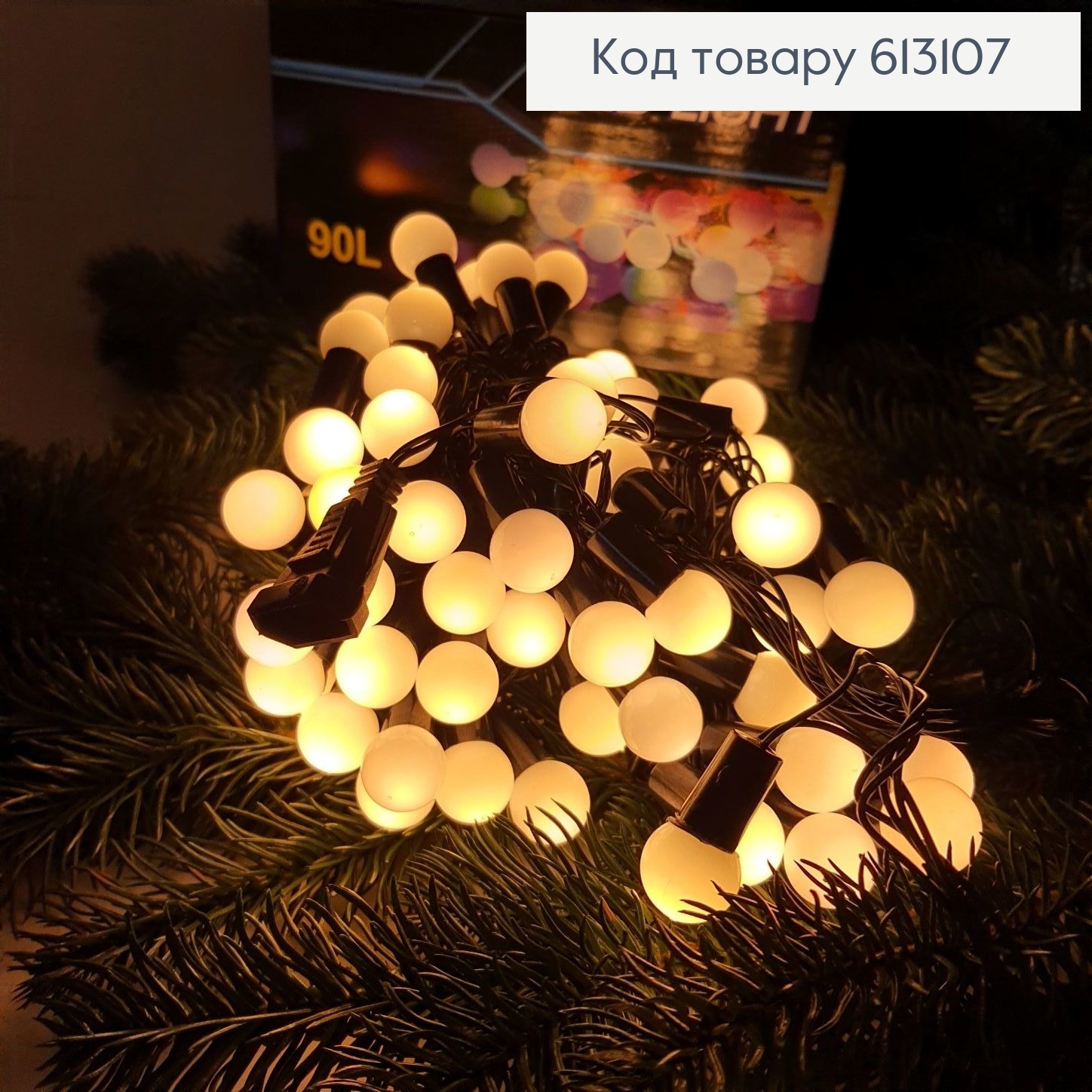 Гирлянда шар 10 мм черная проволока 9 м 90 LED белая тепло(с удлинителем)