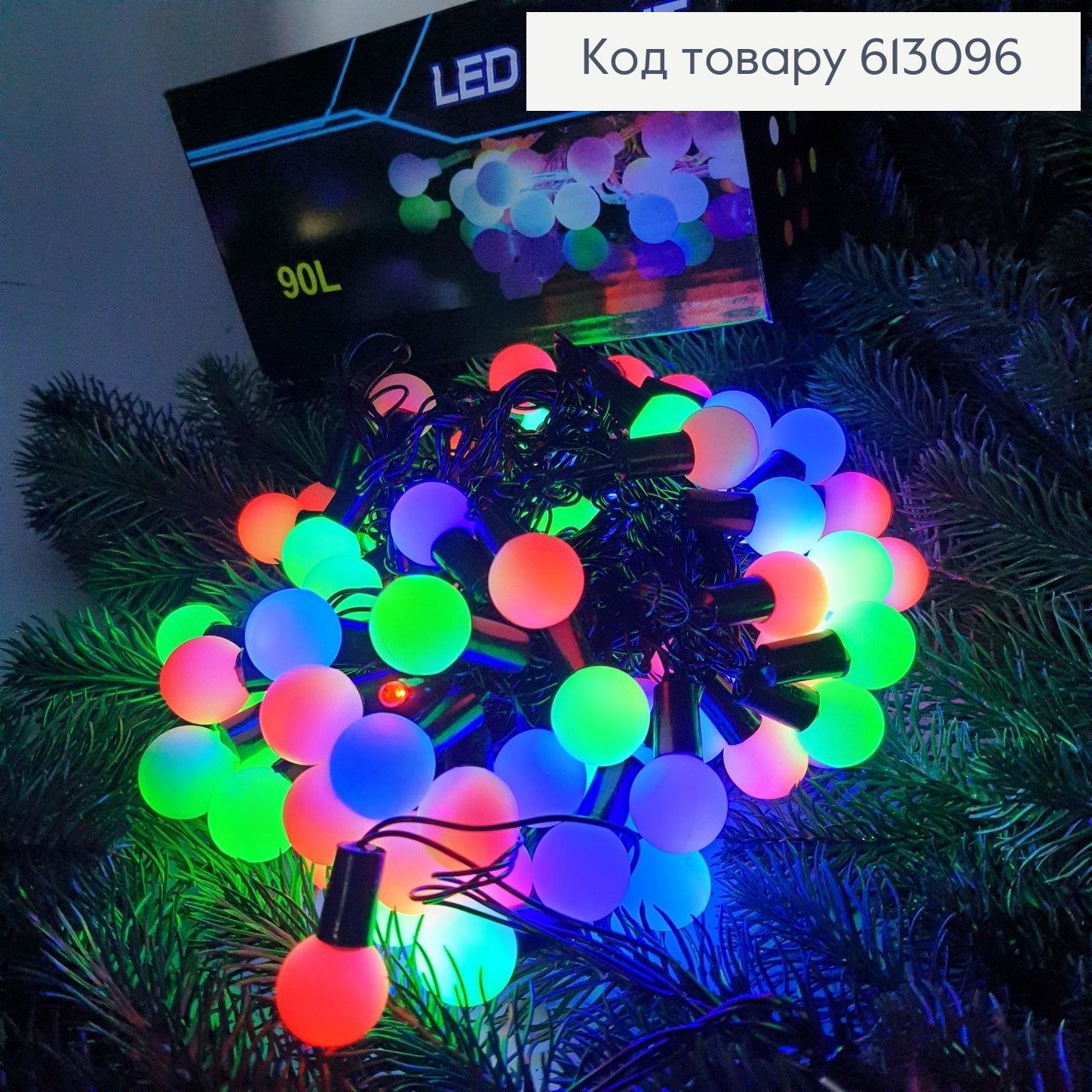 Гирлянда шар 20 мм черная проволока 9 м 90 LED цветная(с удлинителем)