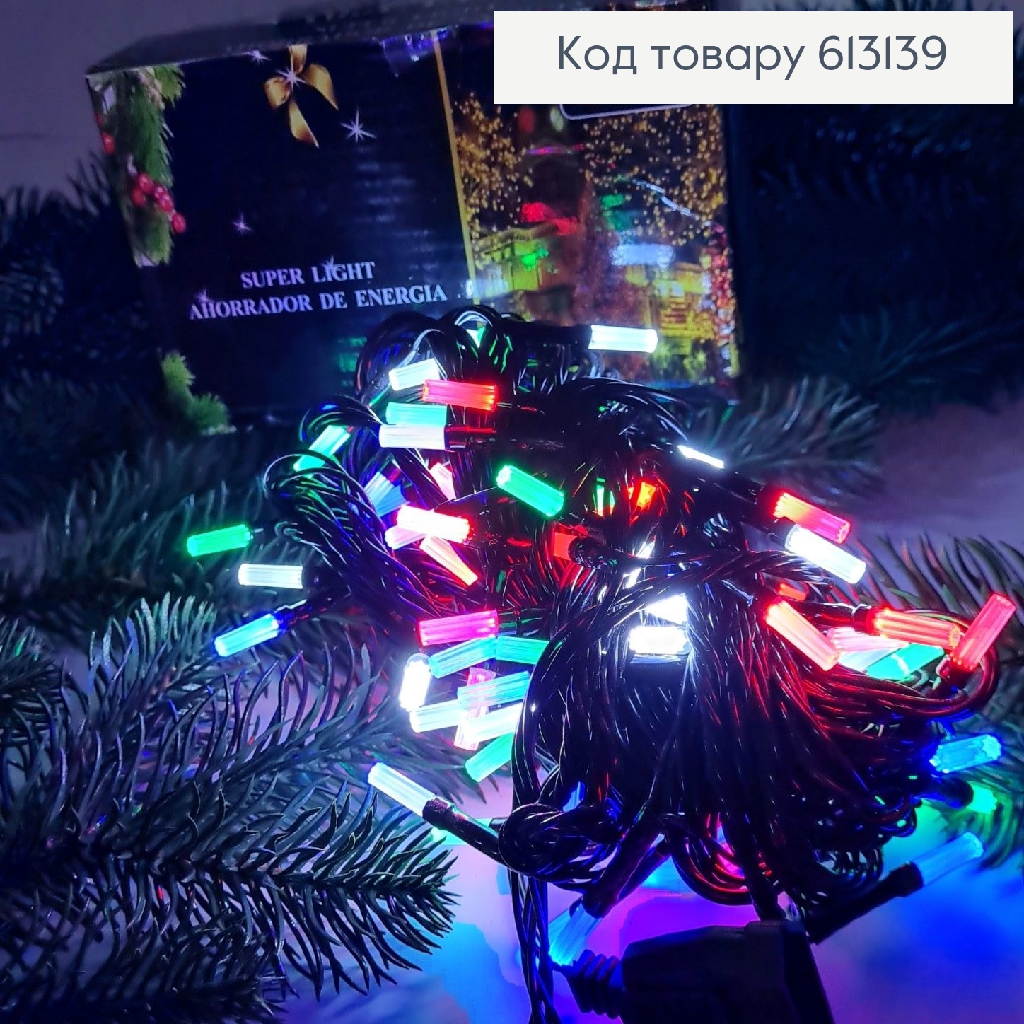 ¶Гирлянда лампочка-цилиндр черная проволока 9 м 100 LED цветная(с удлинителем)