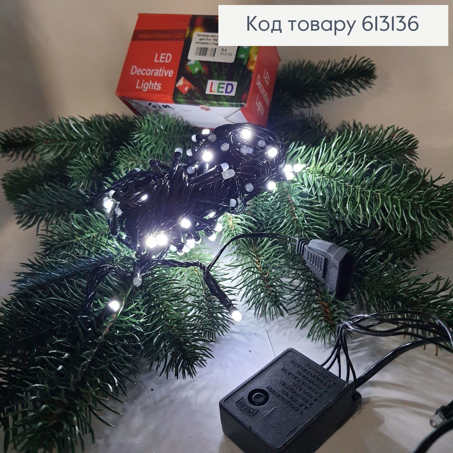 Гирлянда мини шар черная проволока 9 м 100 LED белая холодная( с удлинителем)