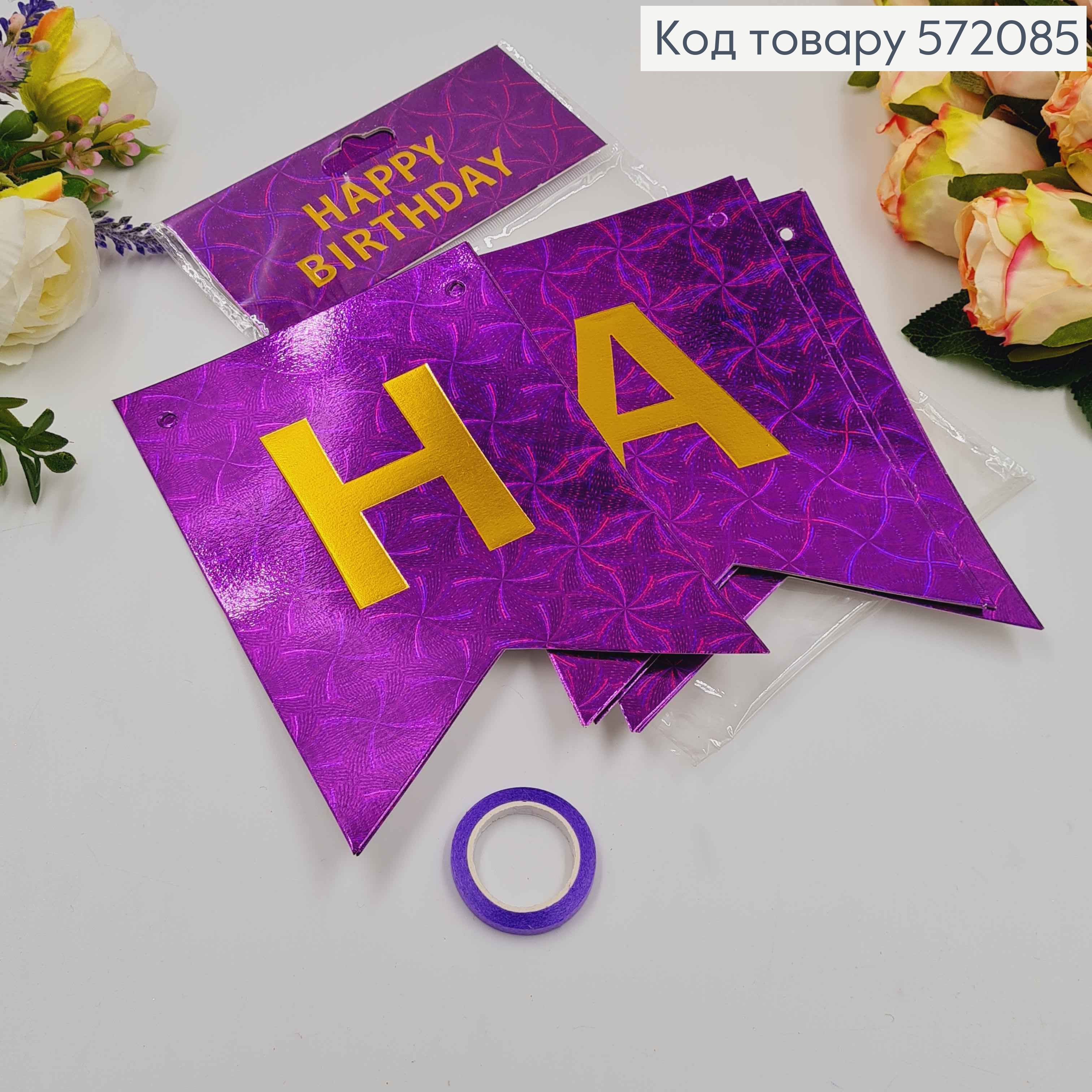 Гирлянда бумажная "Happy Birthday" Фиолетового цвета с голографическим узором, 17*12см 572089 фото
