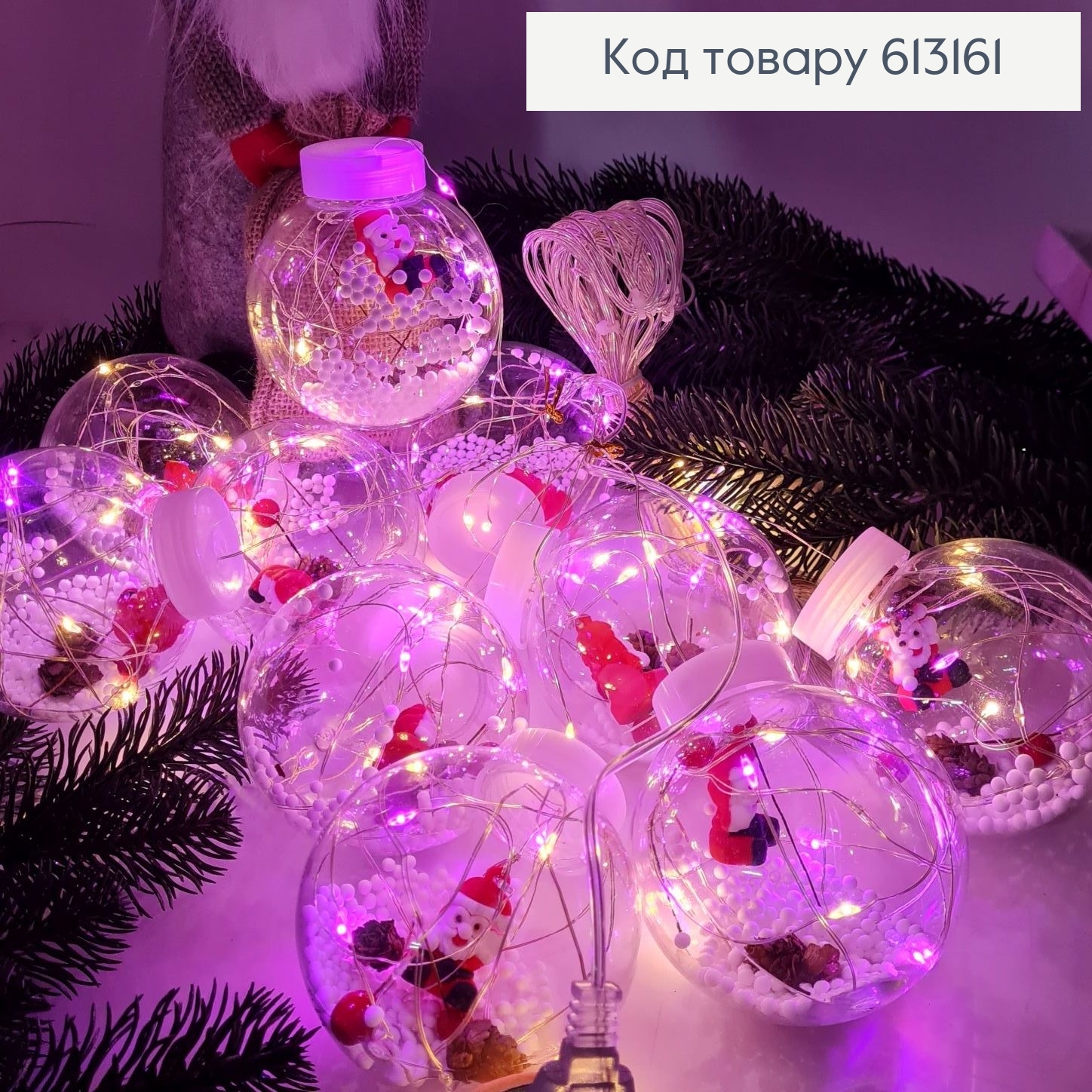 Гирлянда шторка Дед Мороз в шаре 70 мм 10 шт белая проволока 4* 0,55- 0,8м цветная( с удлинителем)