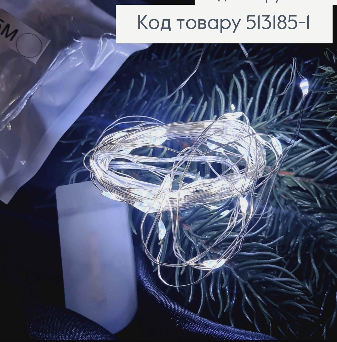 Гирлянда тонкая, на батарейках, Теплого белого цвета, дл. 5м (с батарейками в комплекте) 613183-1 фото