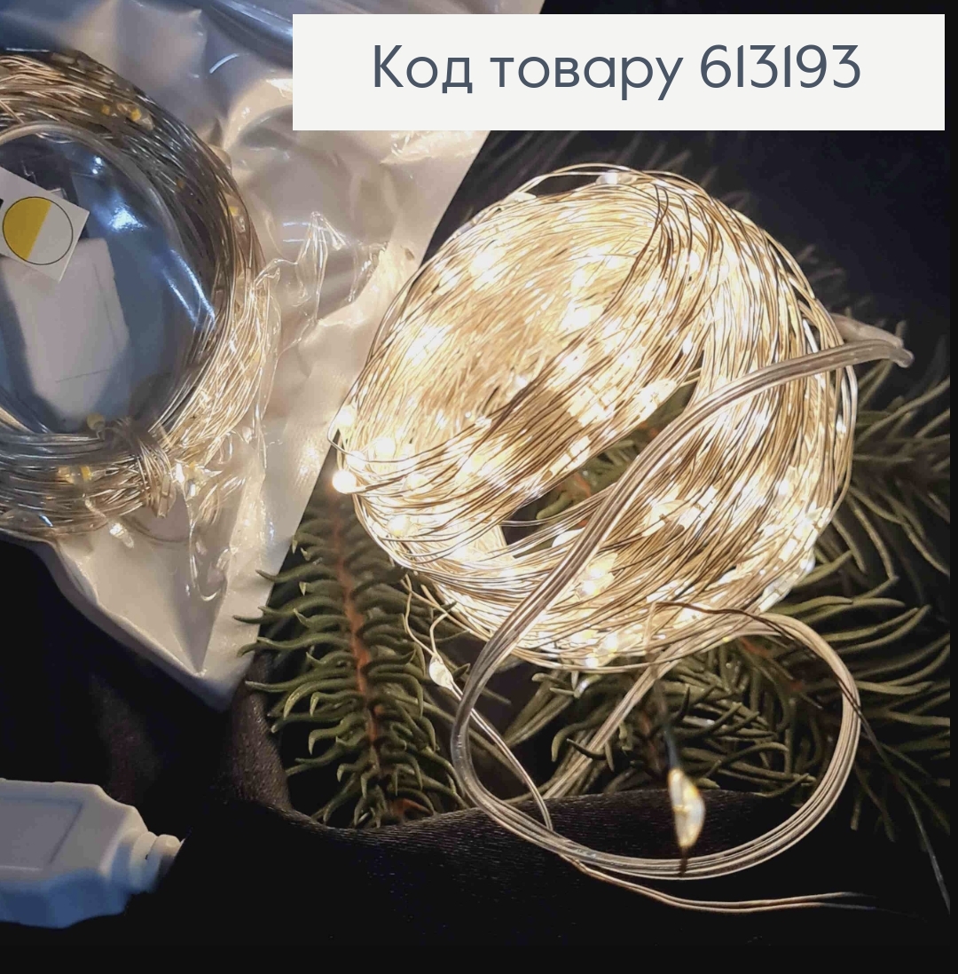 Гирлянда тонкая, на USB, Теплого белого цвета, дл. 20м
