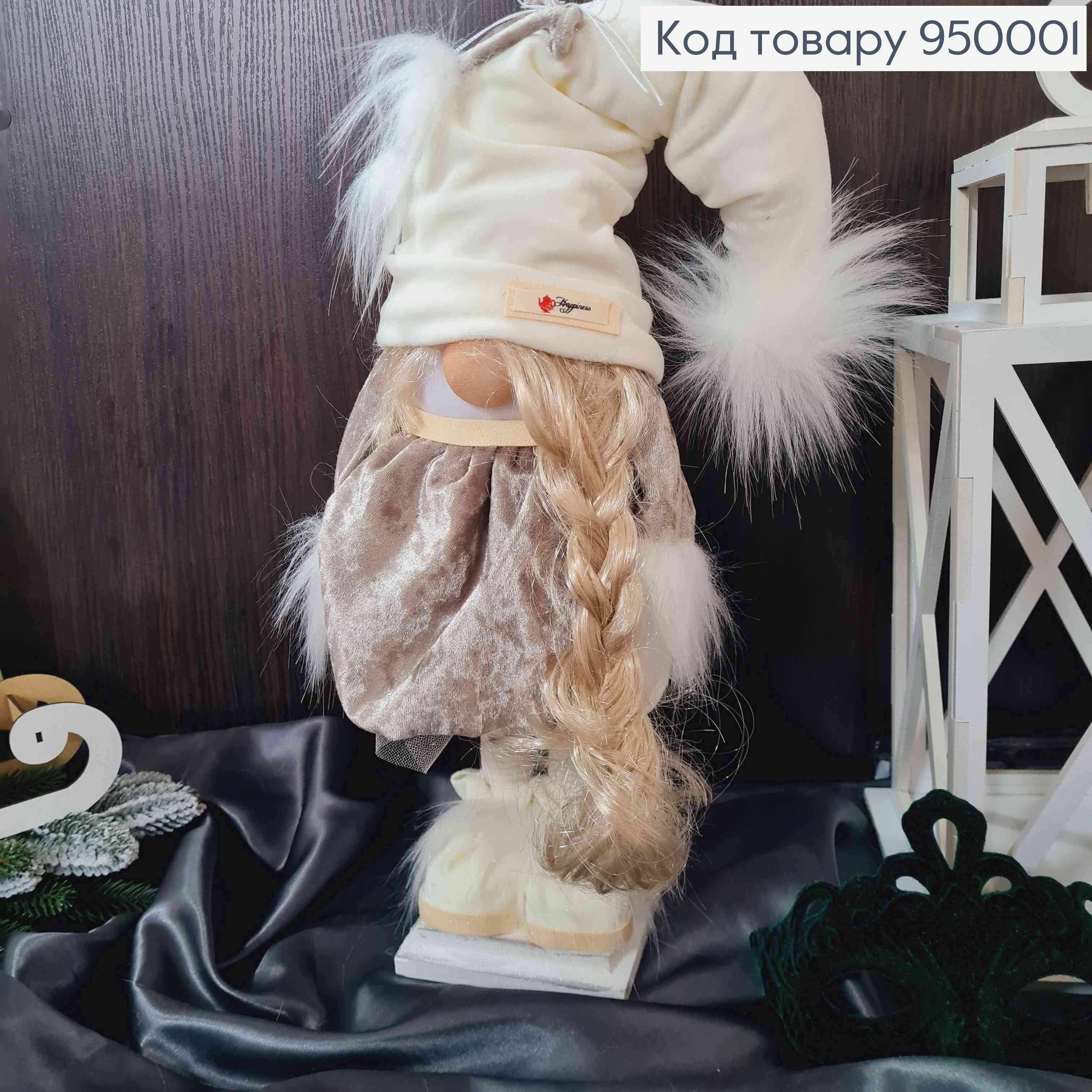 Гном "Скандинавский" цвет Молочный + капучино с косичкой, 60см, ручная работа, Украина