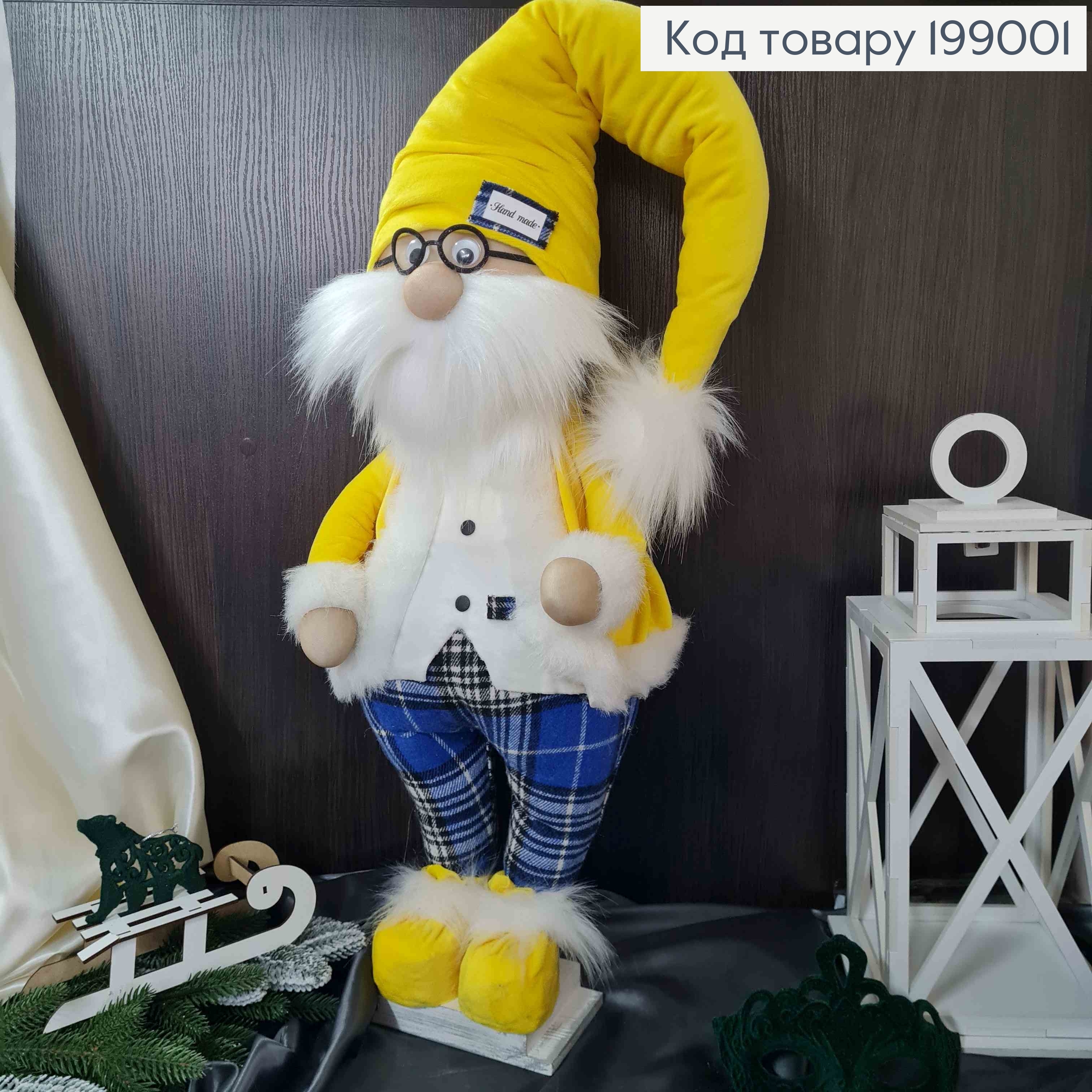 Гном в очках желтый в синих штанишках, высота 85-90м, ручная работа, Украина.