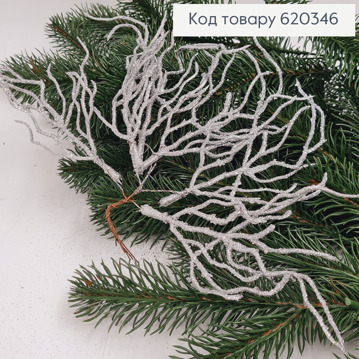 Хворост декоративный СЕРЕБРО блеск, пучок 6шт, 15+5см
