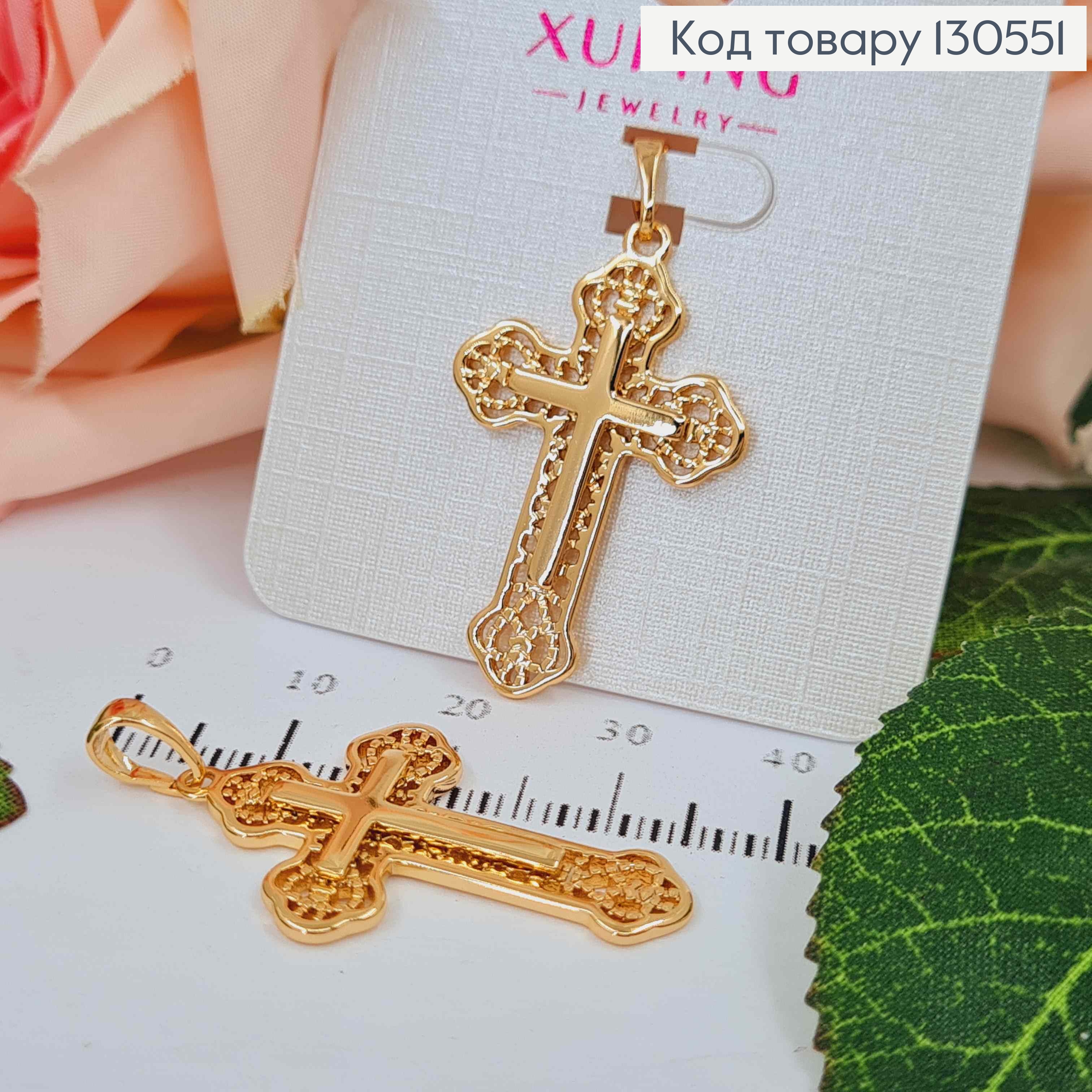 Крестик Ажурный с распятием, размер 3*1,8см, Xuping 18K 130747 фото