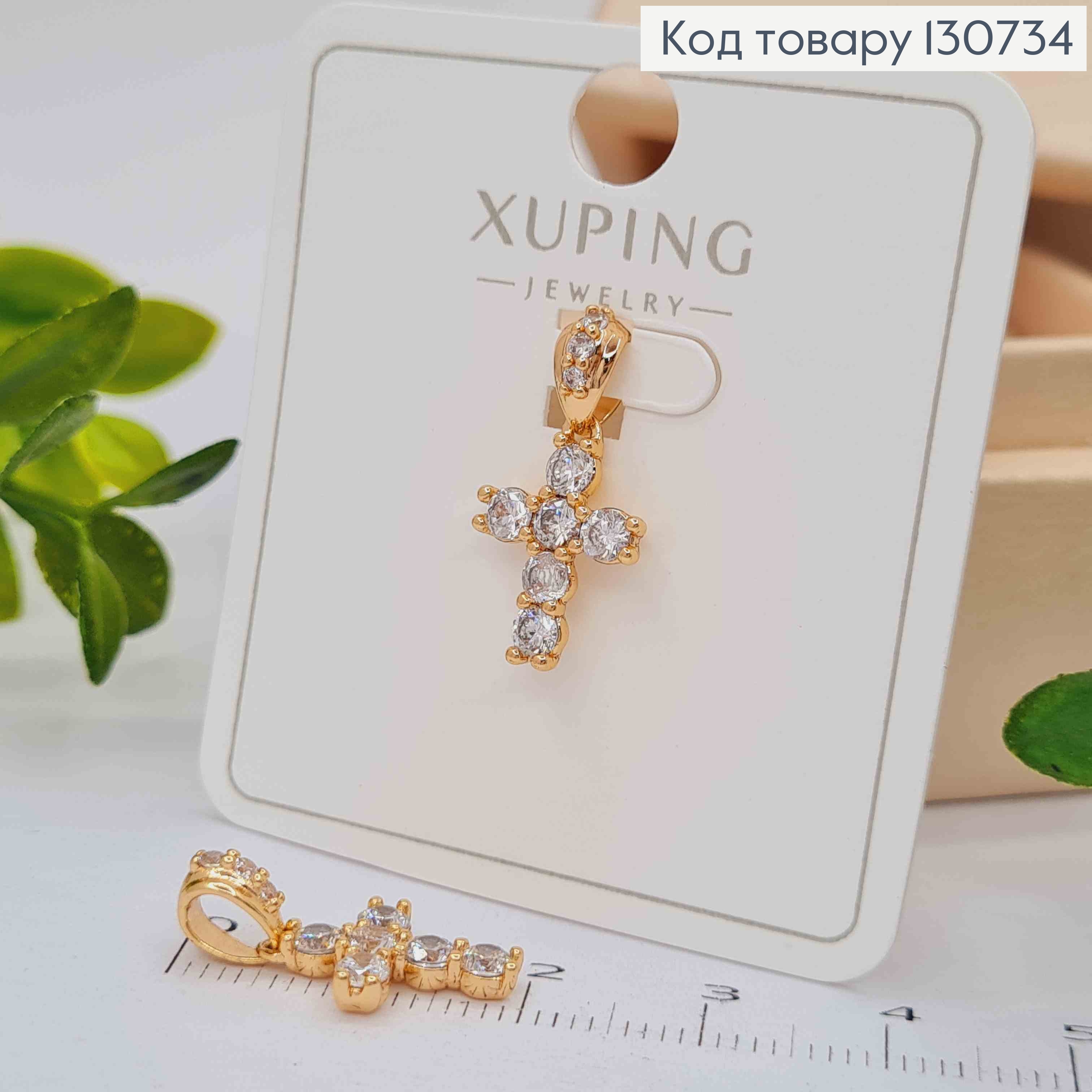 Крестик украшен Блестящими камешками, размер 2,5*1,6см, Xuping 18K 130740 фото