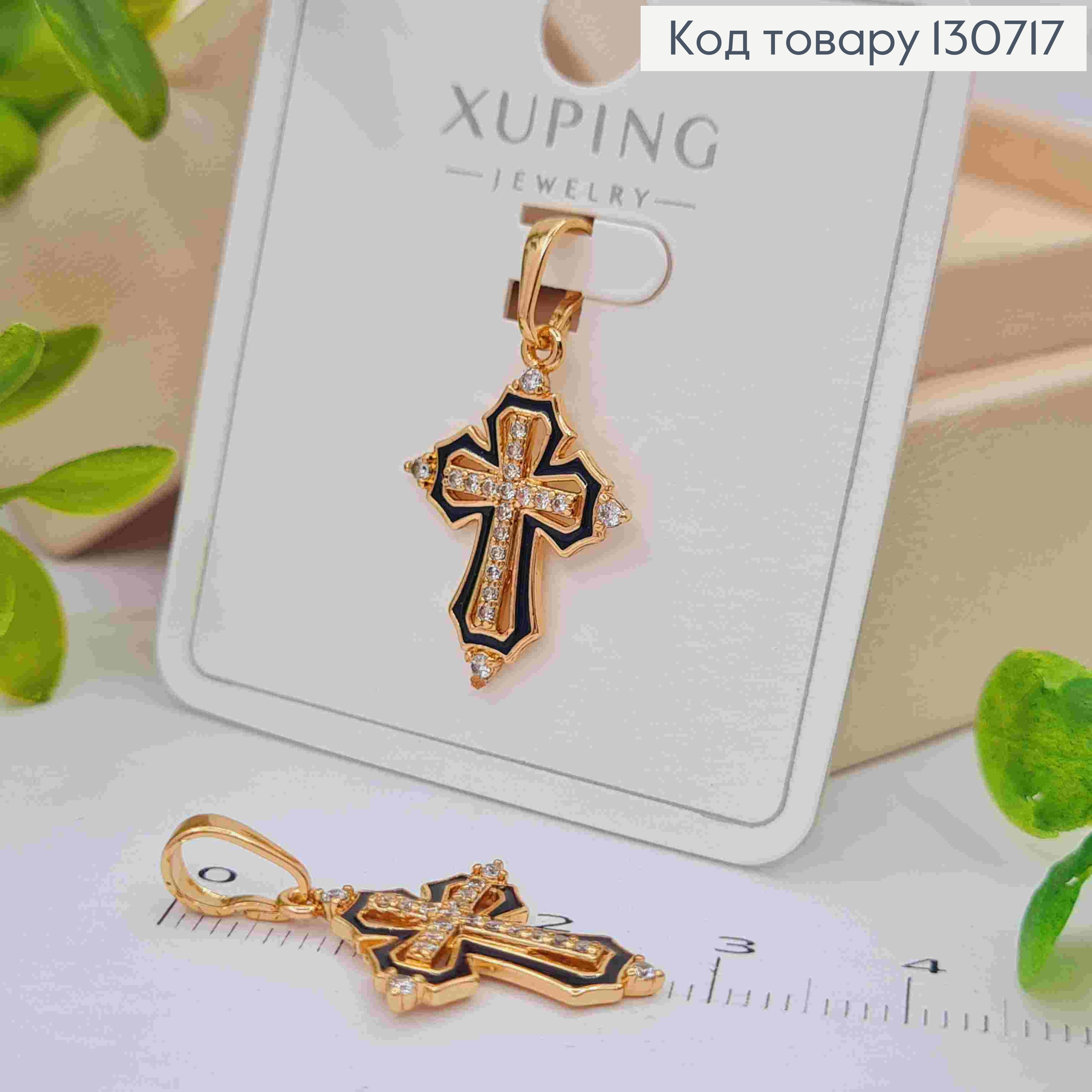 Крестик украшен камешками и Черной эмалью, размер 2,2*1,5см, Xuping 18K
