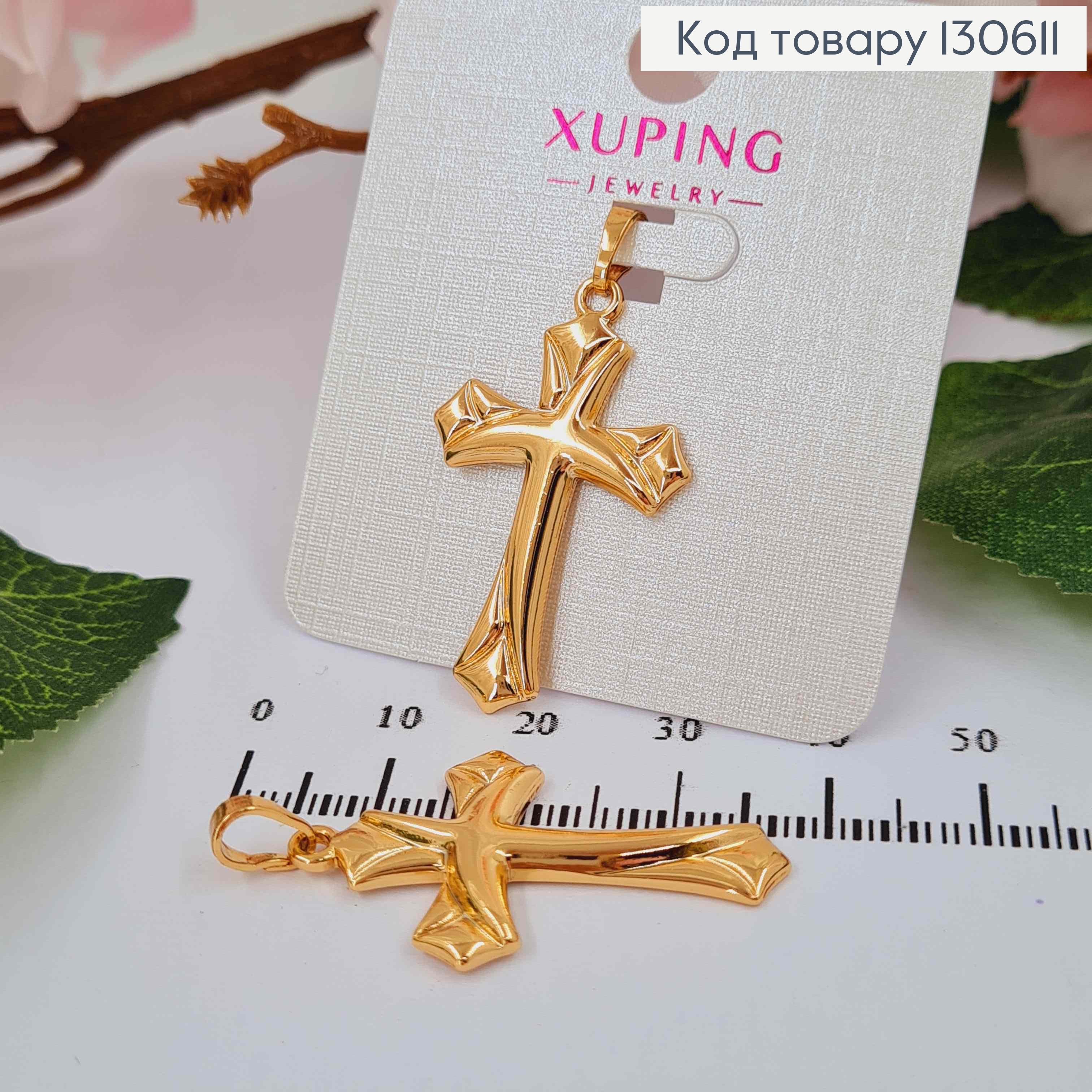 Крестик простой с резьбой, размери 3*2см, Xuping 18K