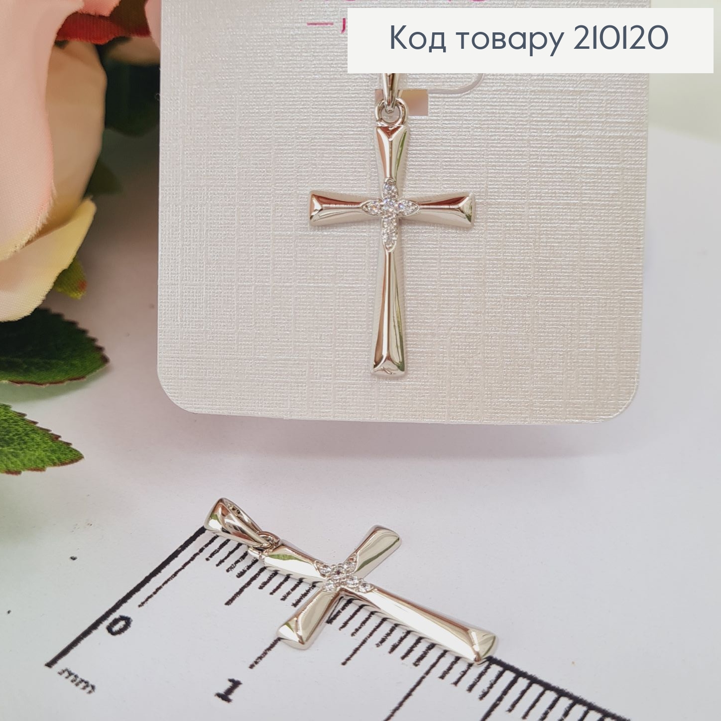 Крестик родованный украшен блестящими камешками, размер 2,5*1,6см, Xuping 210283 фото