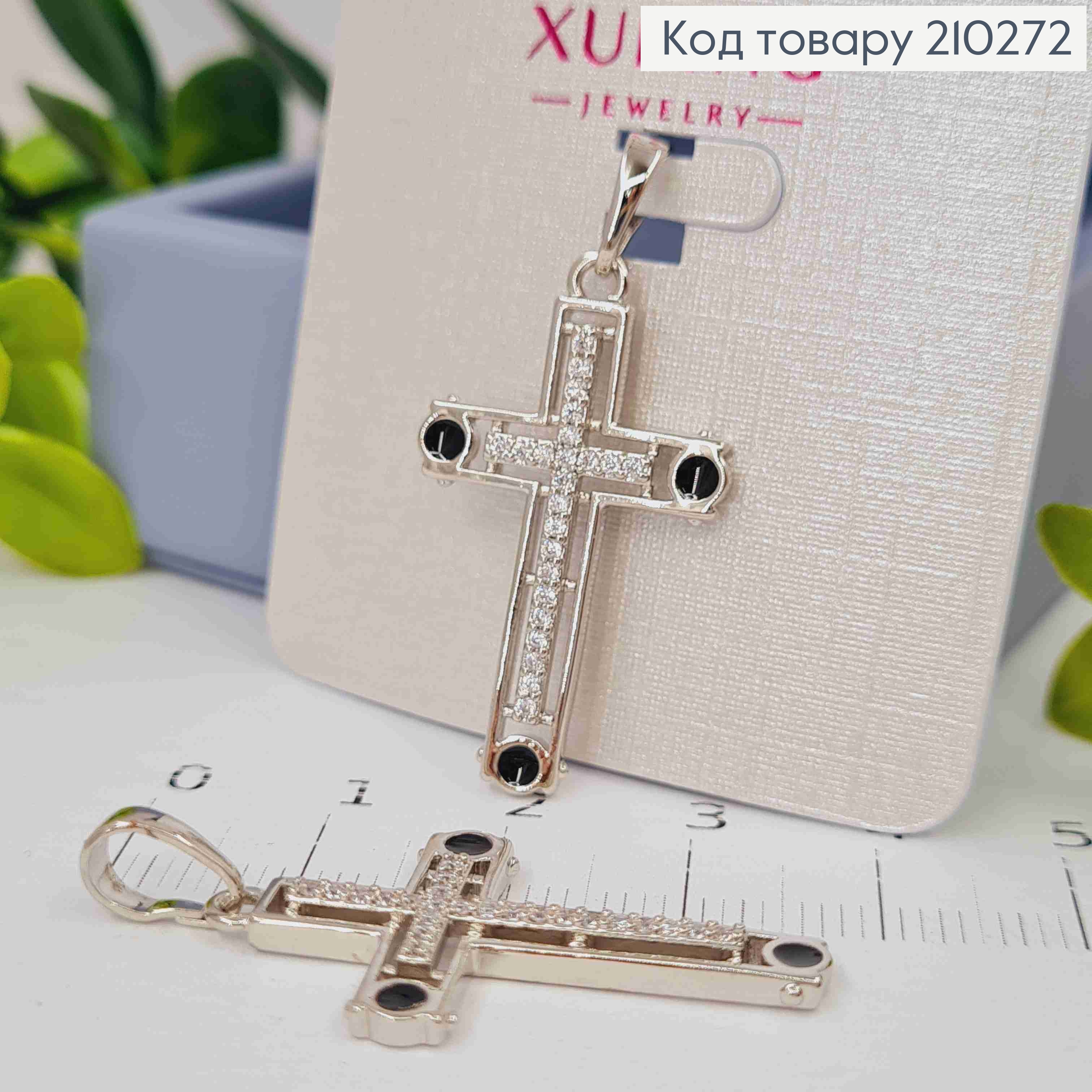 Крестик родованный с распятием и в камнях, размер 2,8*2см Xuping (серебряного цвета) 210280 фото
