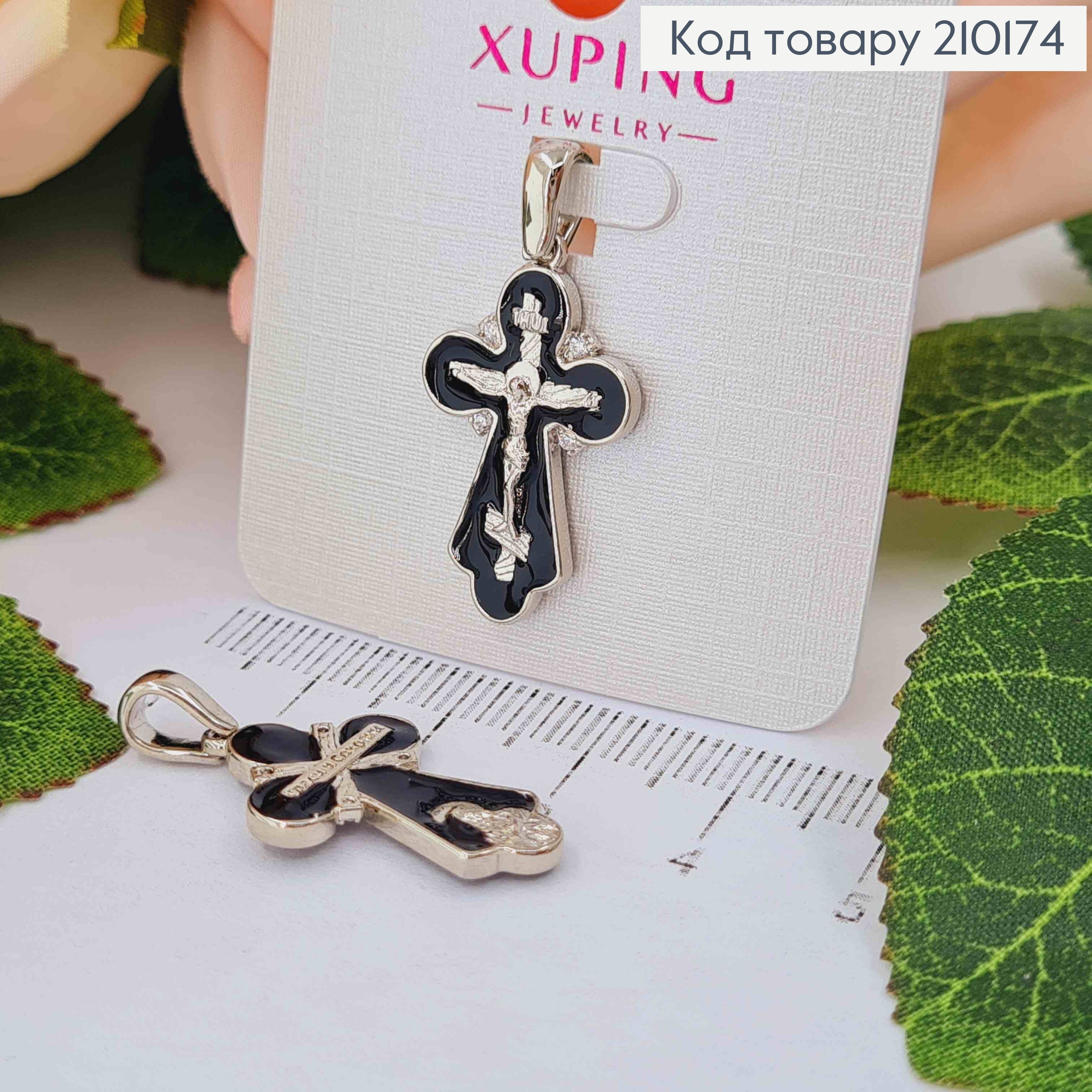 Крестик родованный украшен блестящими камешками и черной эмалью по краям, 3*1,8см, Xuping 210272 фото