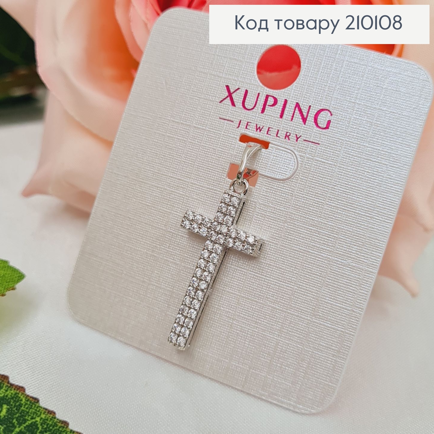 Крестик родованный украшен блестящими камешками, размер 2,8*1,6см, Xuping 210285 фото