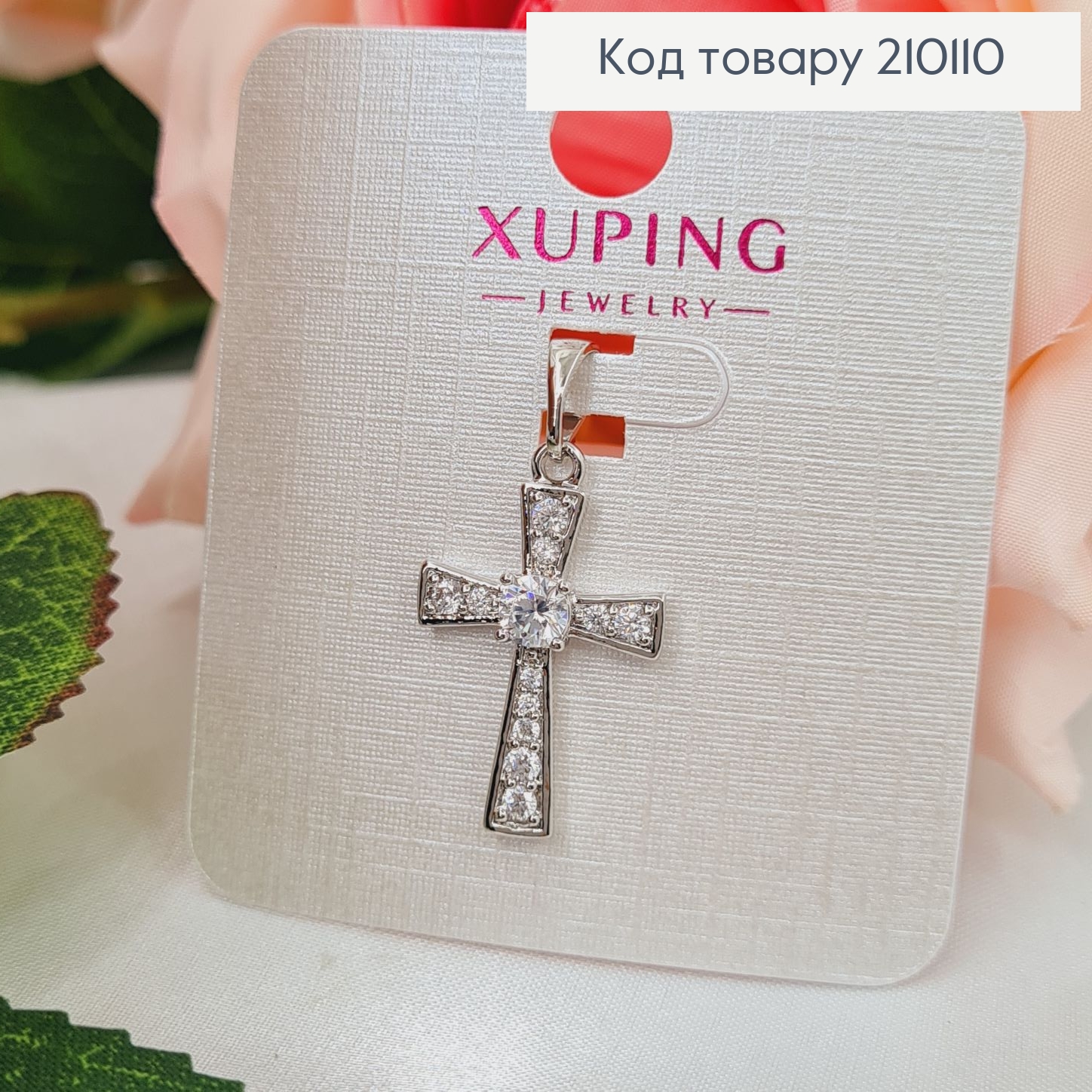 Крестик родованный украшен блестящими камешками, размер 2,8*1,6см, Xuping 210285 фото