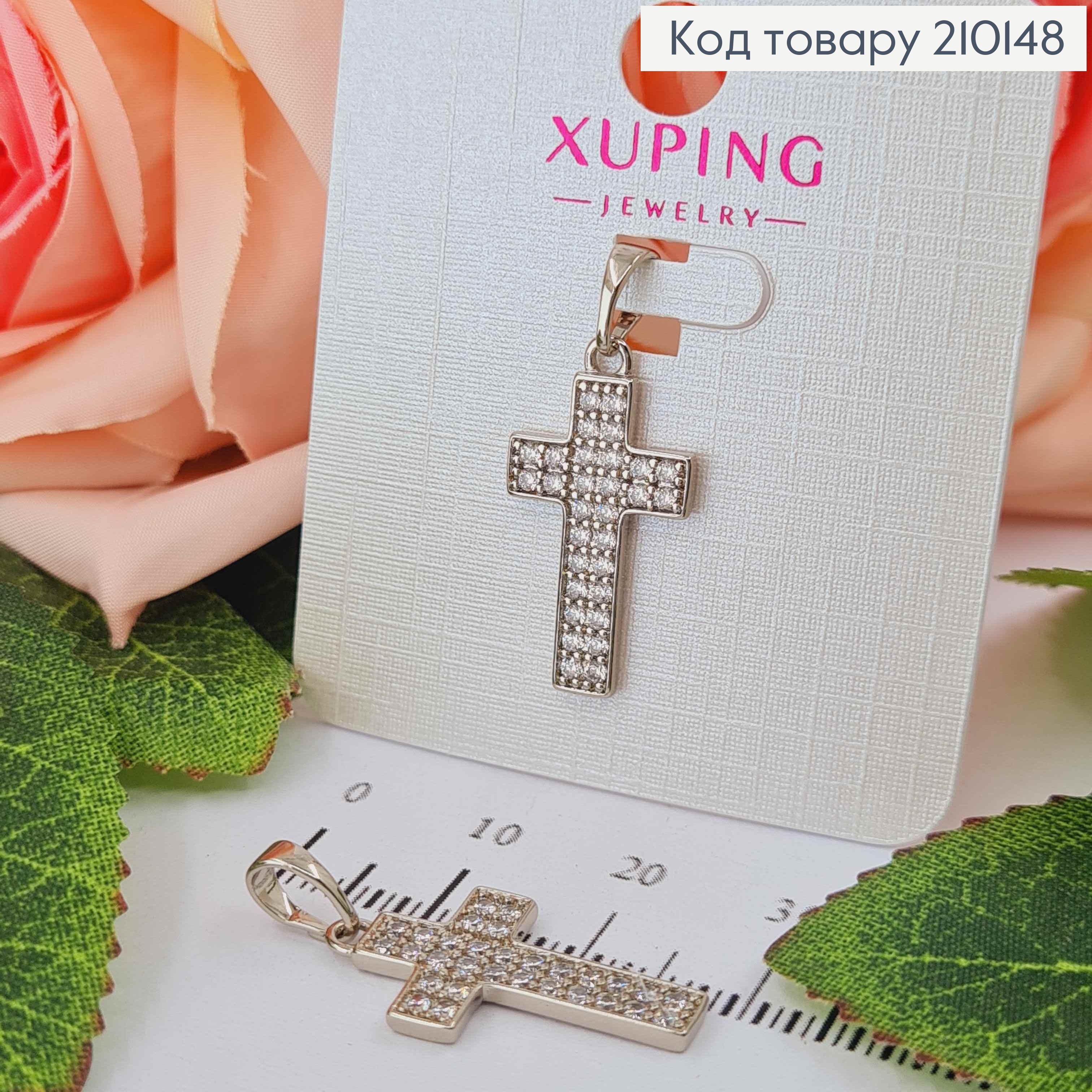 Крестик родованный с распятием и в камнях, размер 2,8*2см Xuping (серебряного цвета) 210280 фото