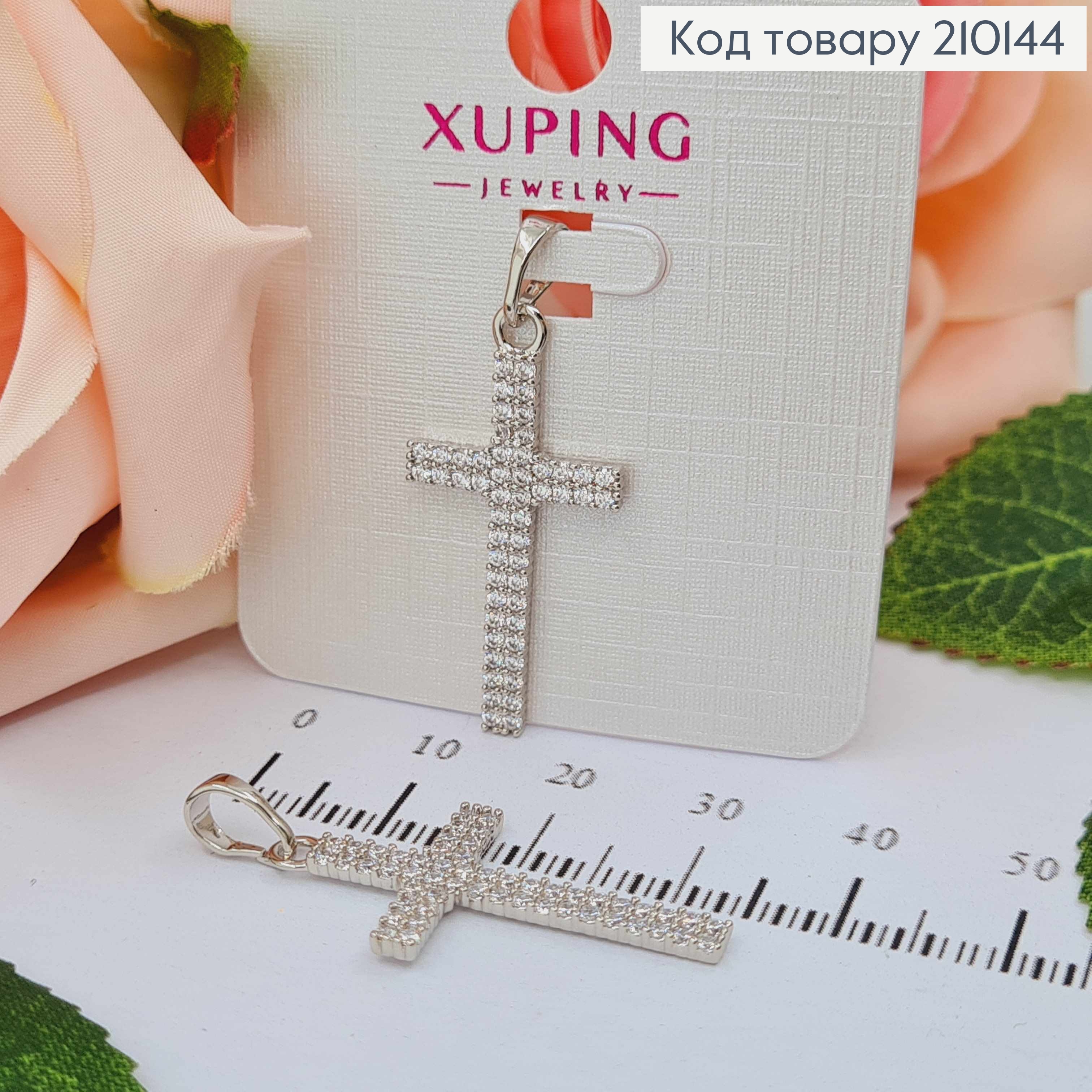 Крестик родованный с распятием и в камнях, размер 2,8*2см Xuping (серебряного цвета) 210280 фото