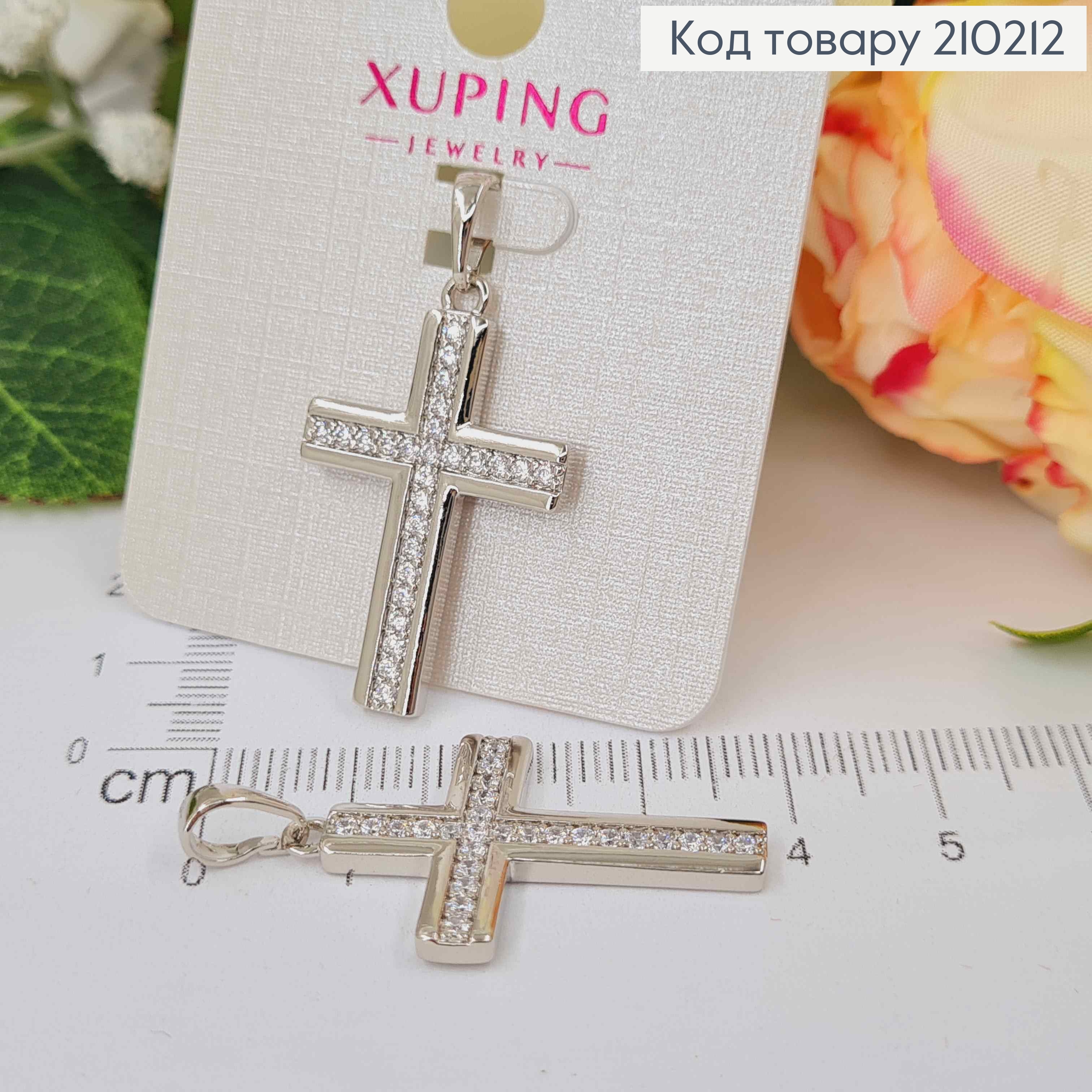 Крестик родованный с распятием и в камнях, размер 2,8*2см Xuping (серебряного цвета) 210280 фото