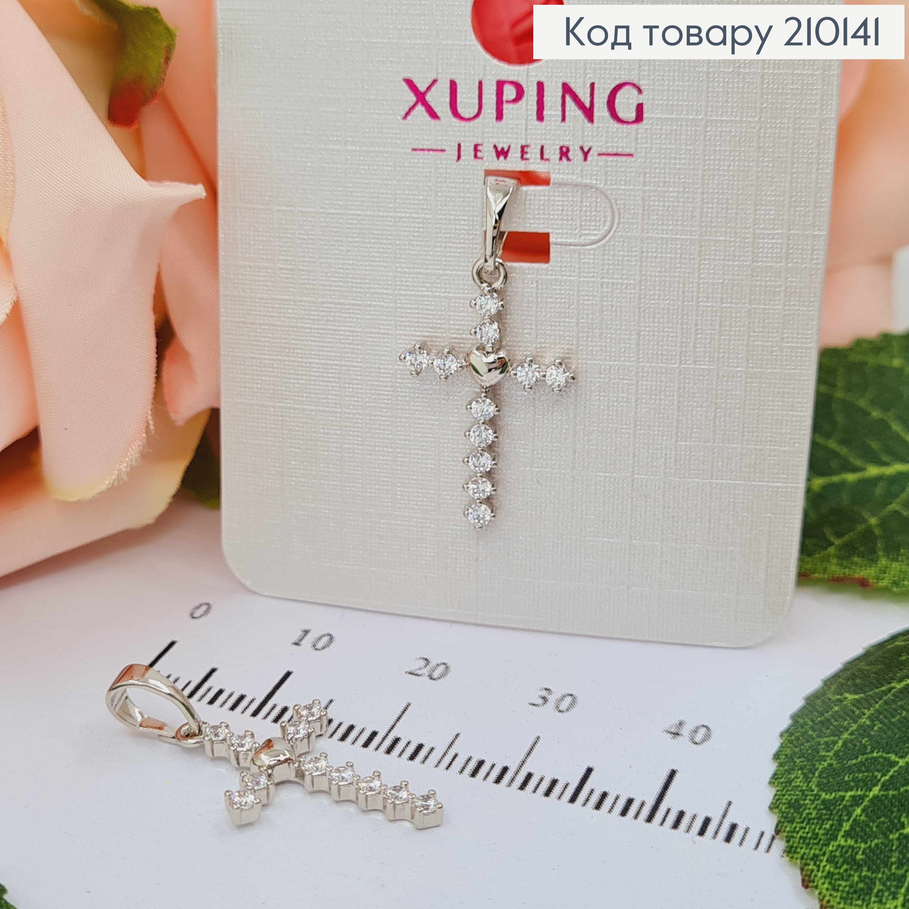 Крестик родованный с камнями и сердечком, 2*1,5см, Xuping