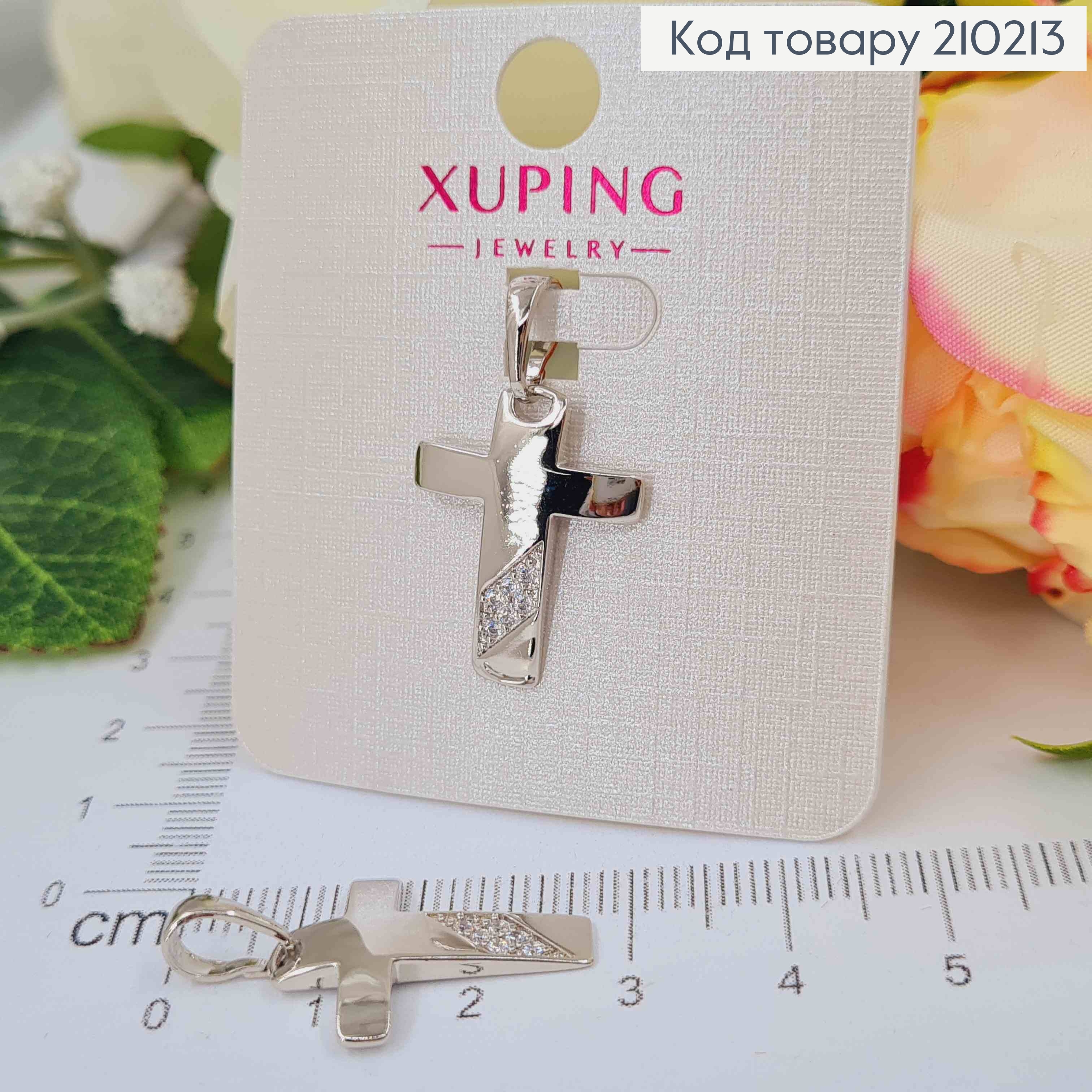 Крестик родованный украшен блестящими камешками, размер 2,8*1,6см, Xuping 210285 фото