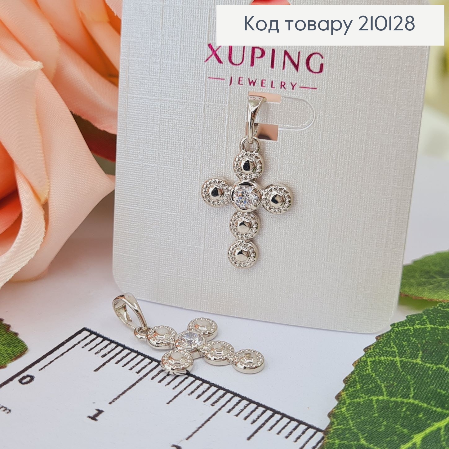 Крестик родованный украшен блестящими камешками, размер 2,8*1,6см, Xuping 210285 фото