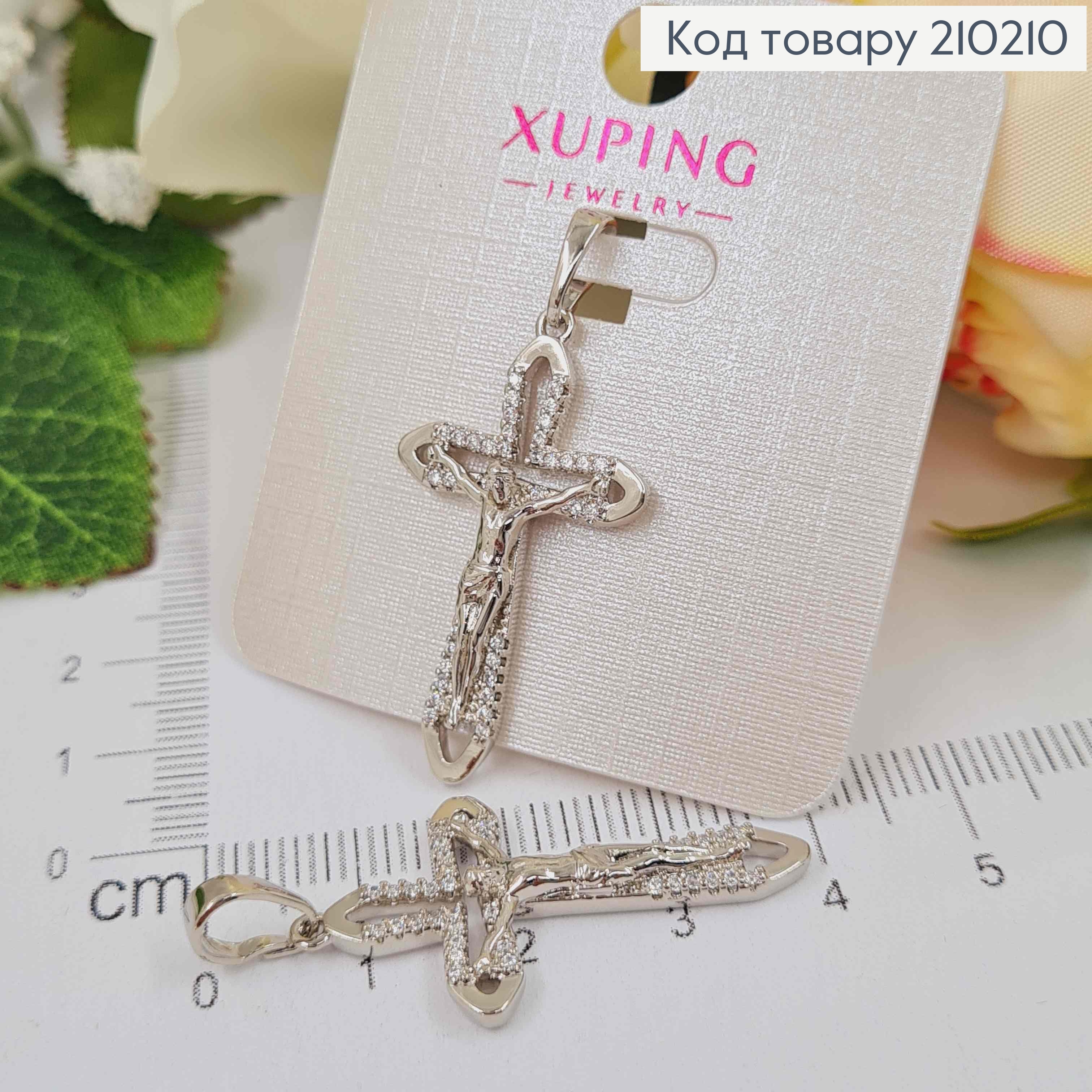 Крестик родованный с распятием и в камнях, размер 2,8*2см Xuping (серебряного цвета) 210280 фото
