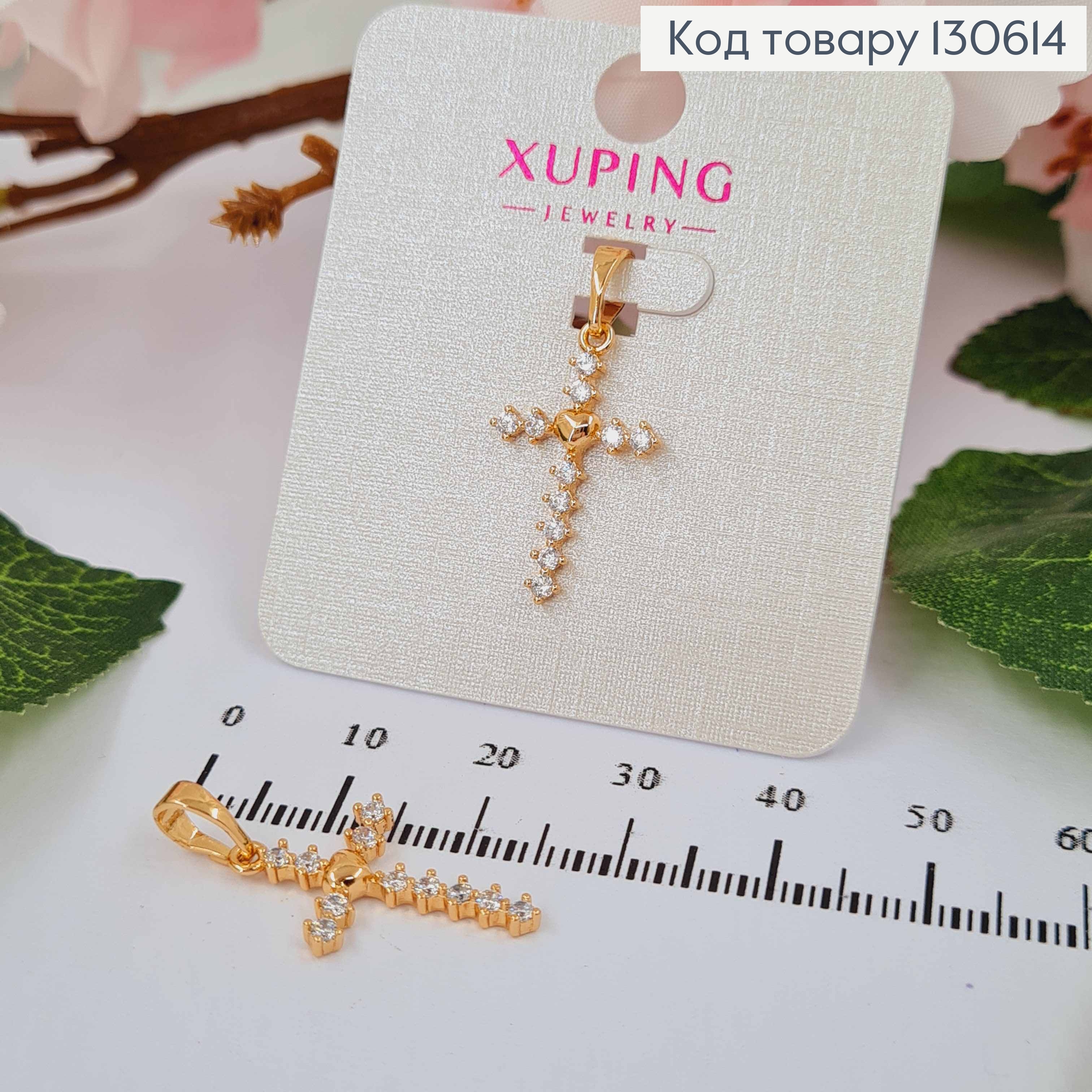 Крестик в каминках с сердечком, 2,5*1,2см, Xuping 18K