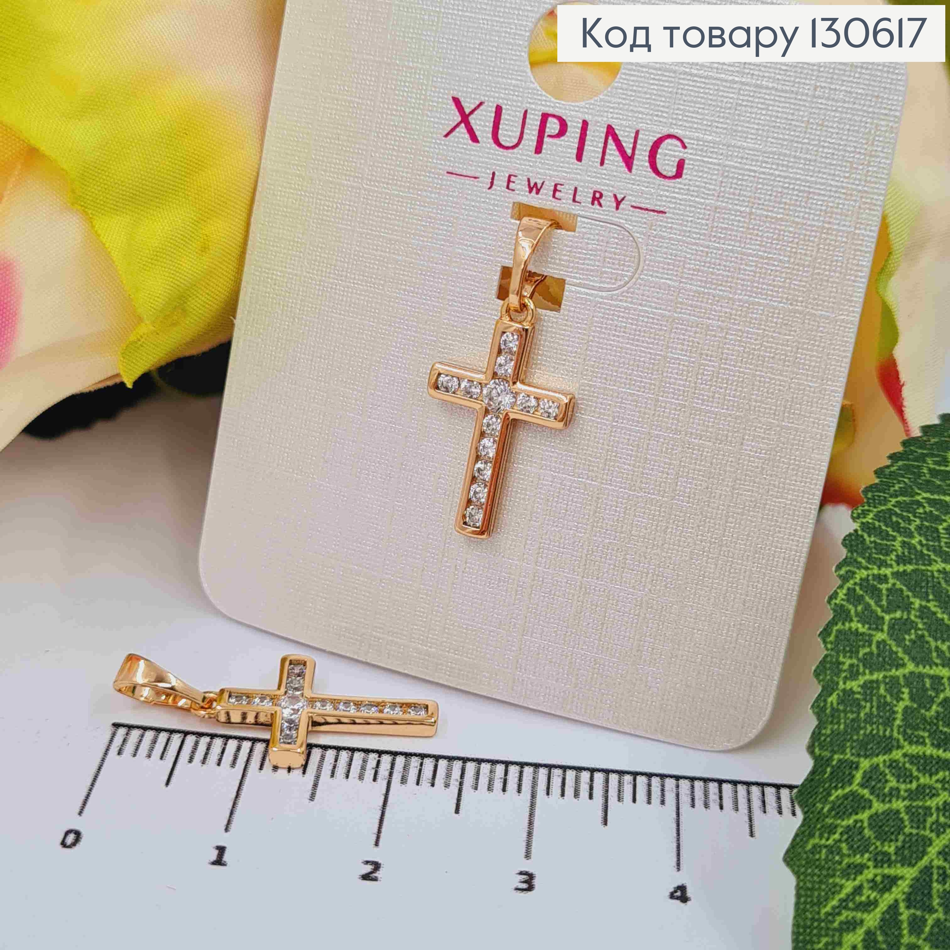 Крестик украшен Блестящими камешками, размер 2,5*1,6см, Xuping 18K 130740 фото