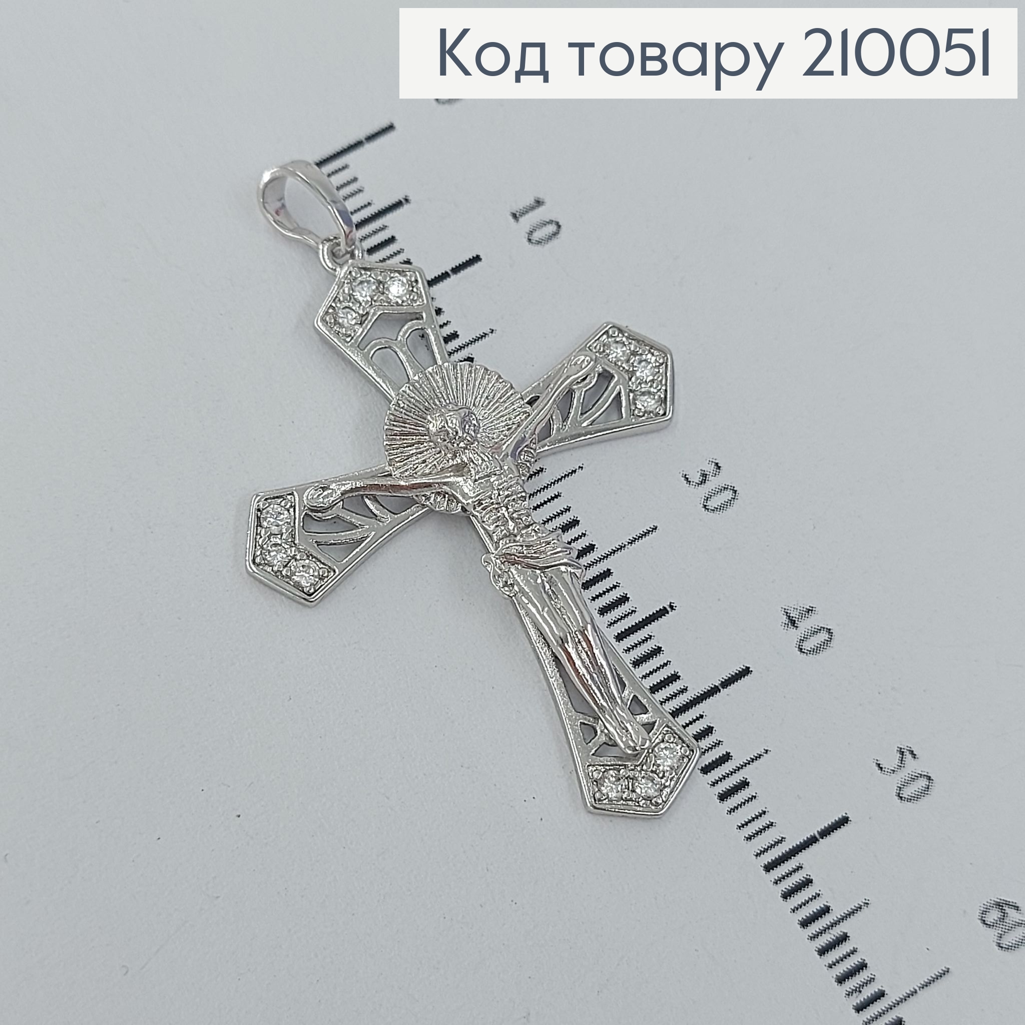Крестик родованный с распятием и в камнях, размер 2,8*2см Xuping (серебряного цвета) 210280 фото