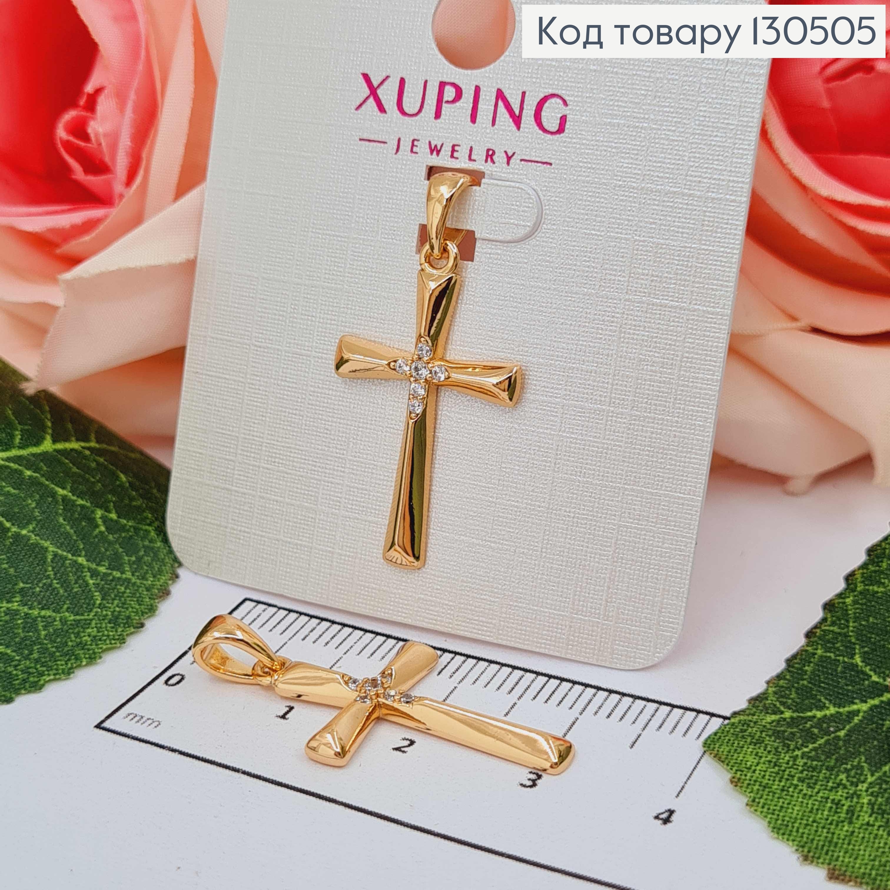 Крестик украшен Блестящими камешками, размер 3*1,8см, Xuping 18K 130737 фото