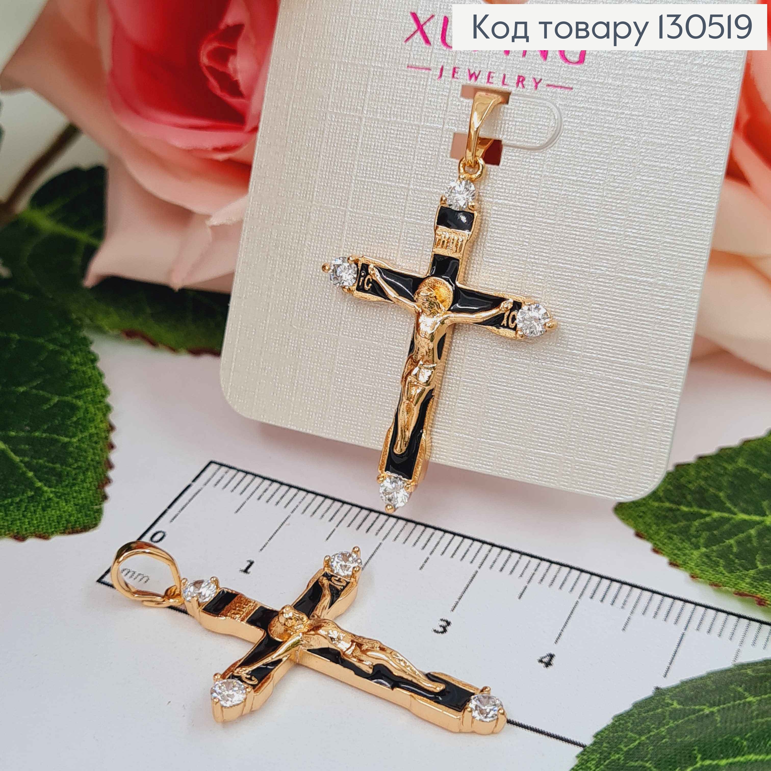 Крестик с распятием, черный, с камешками, 3*2см Xuping 18K