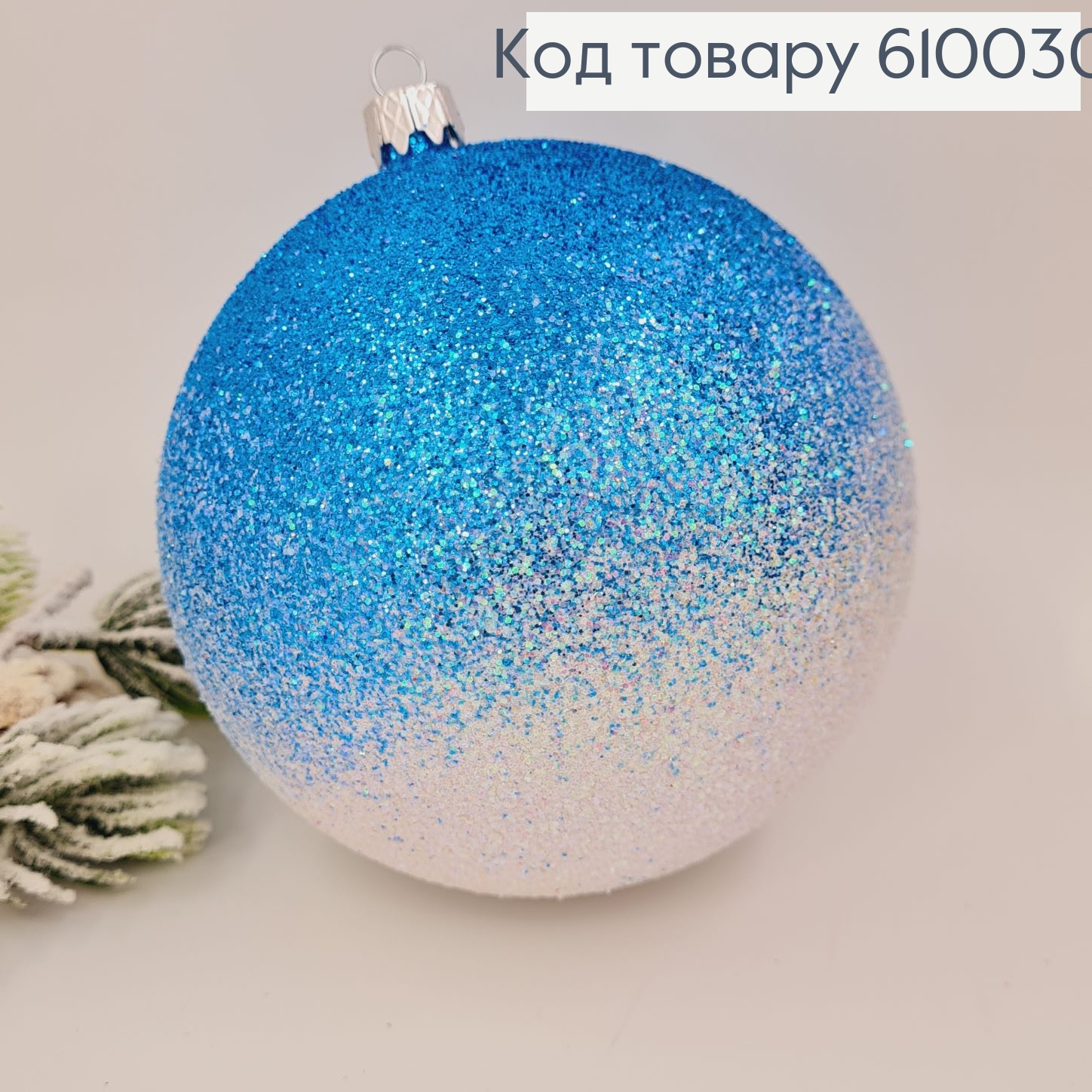 Игрушка шар 100 мм Омбре глитер голубо белый