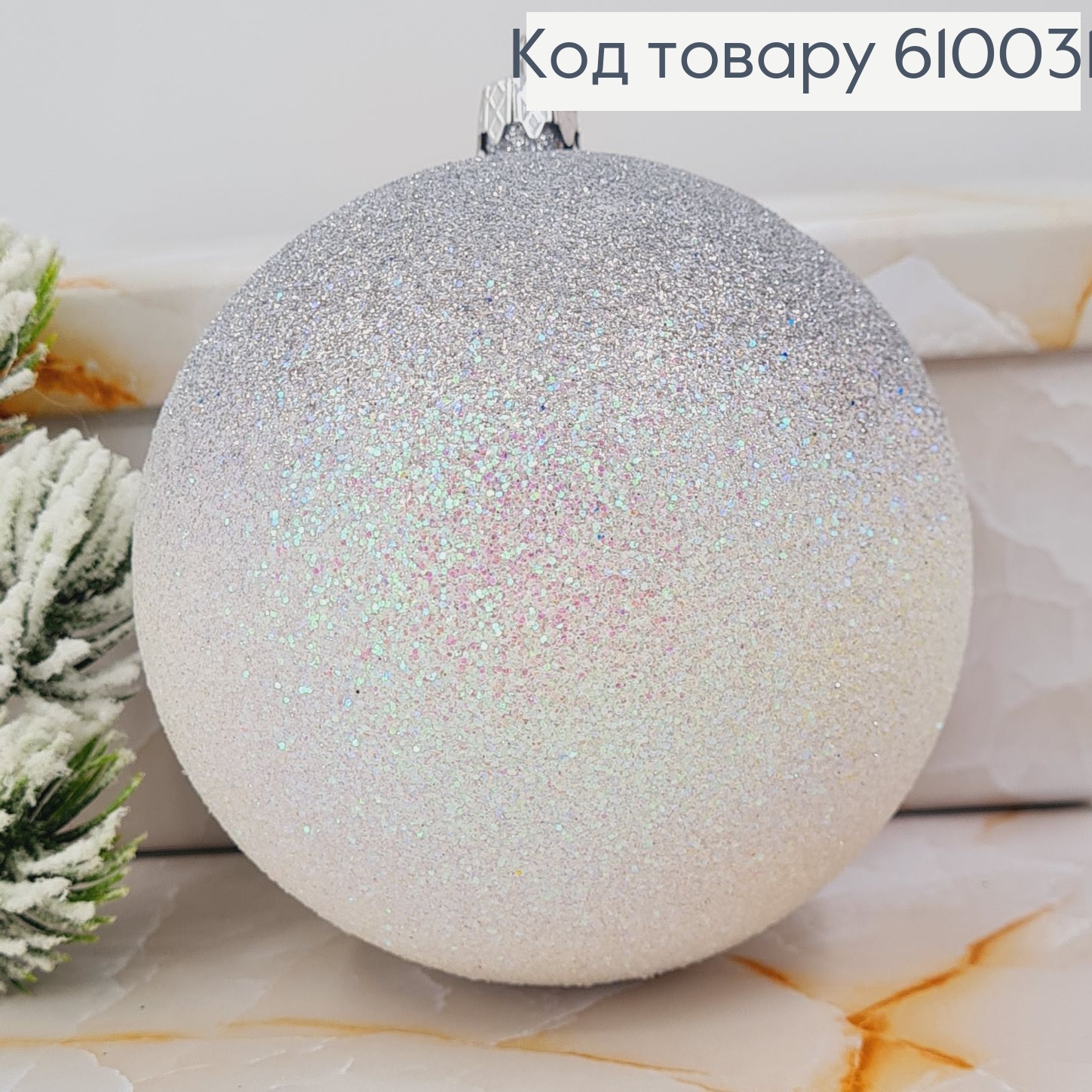 Игрушка шар 100 мм Омбре глитер ссеребряно белый