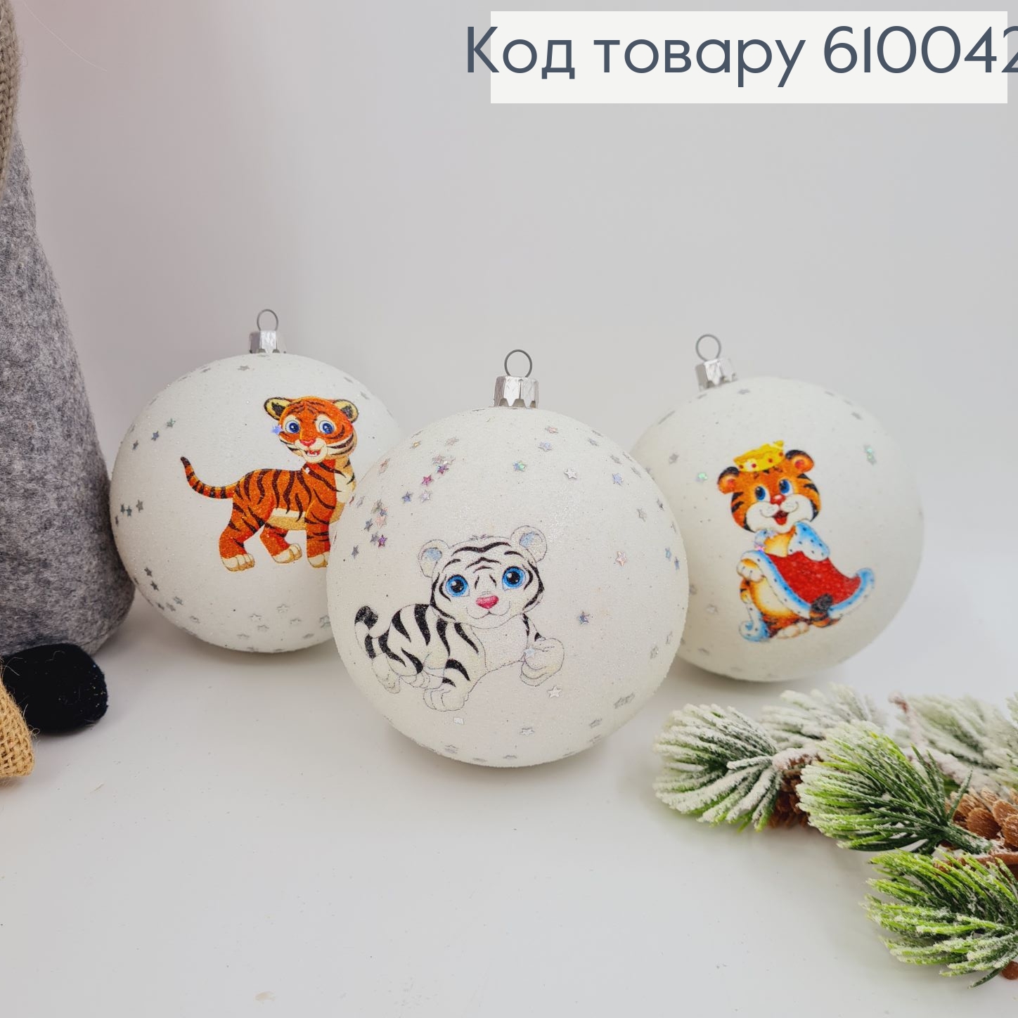 ¶Игрушка шар 100 мм символ года Тигр иней белый