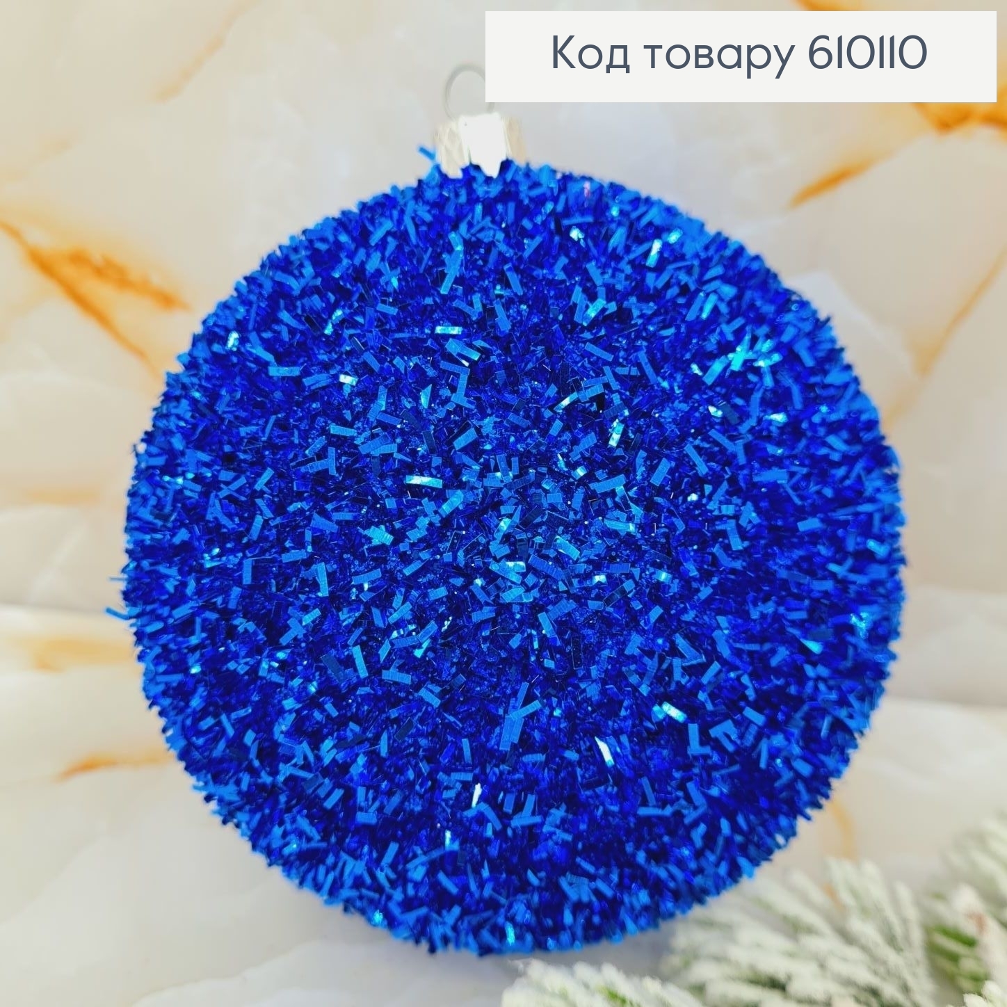 Игрушка шар 100мм "БАРХАТ+цепочка" синий цвет, новогоднее украшение пластик.УКРАИНА. 610250 фото