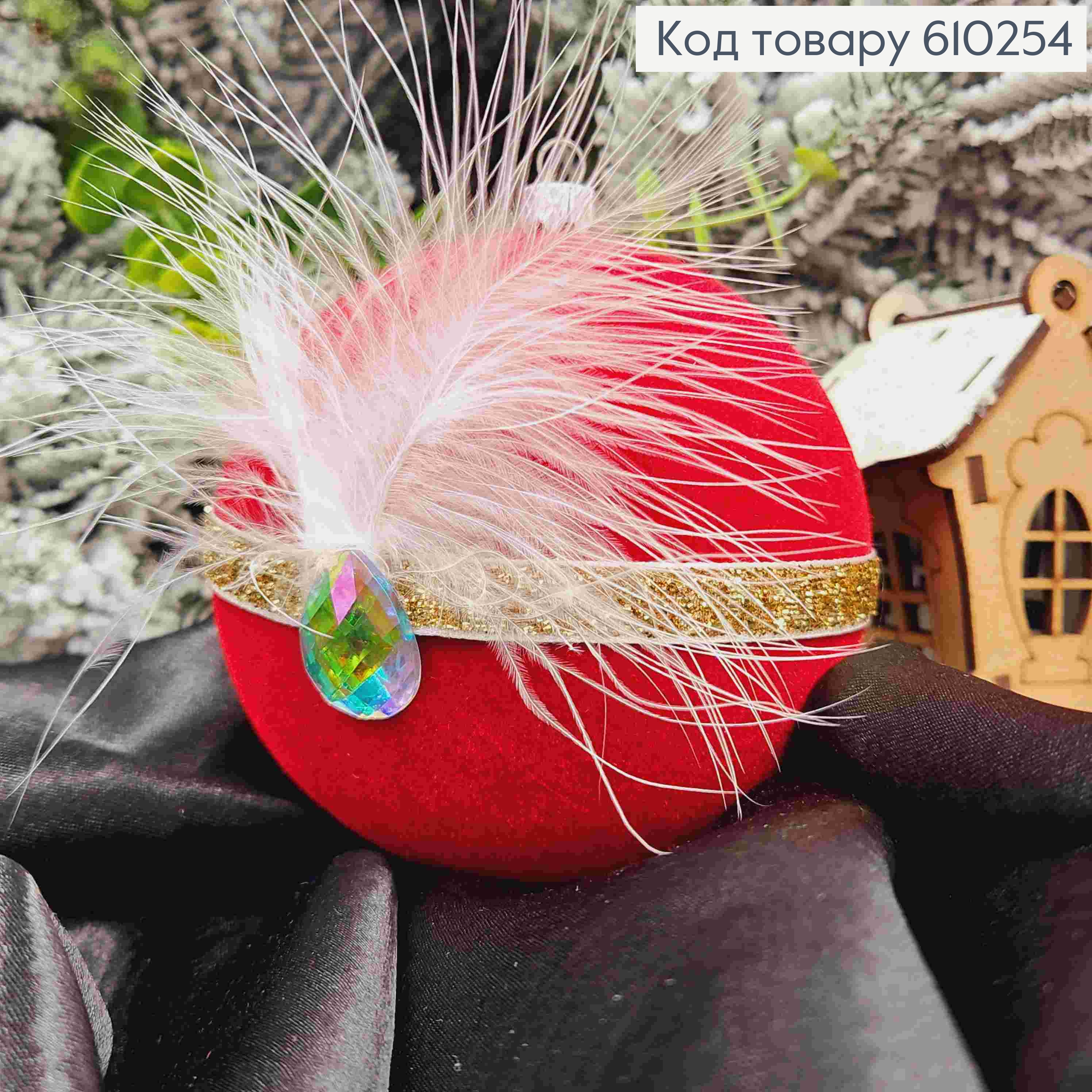 Игрушка шар 100мм БАРХАТ"КАРНАВАЛ" КРАСНЫЙ цвет, новогоднее украшение пластик.УКРАИНА.