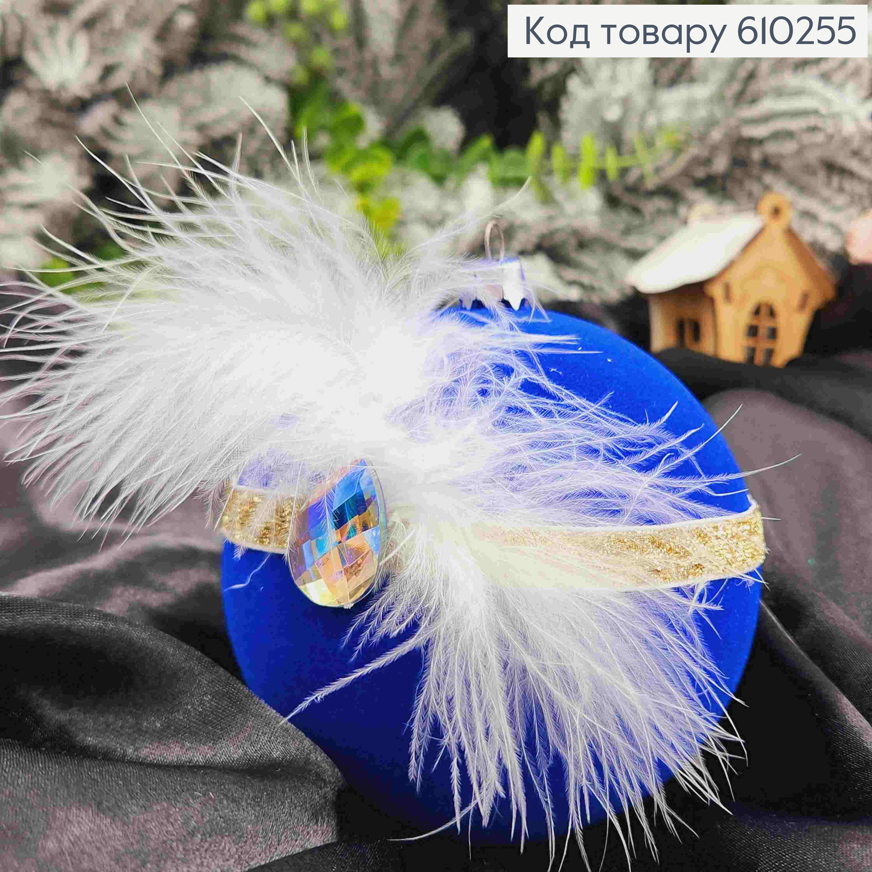 Игрушка шар 100мм "БАРХАТ+цепочка" синий цвет, новогоднее украшение пластик. УКРАИНА 610249 фото