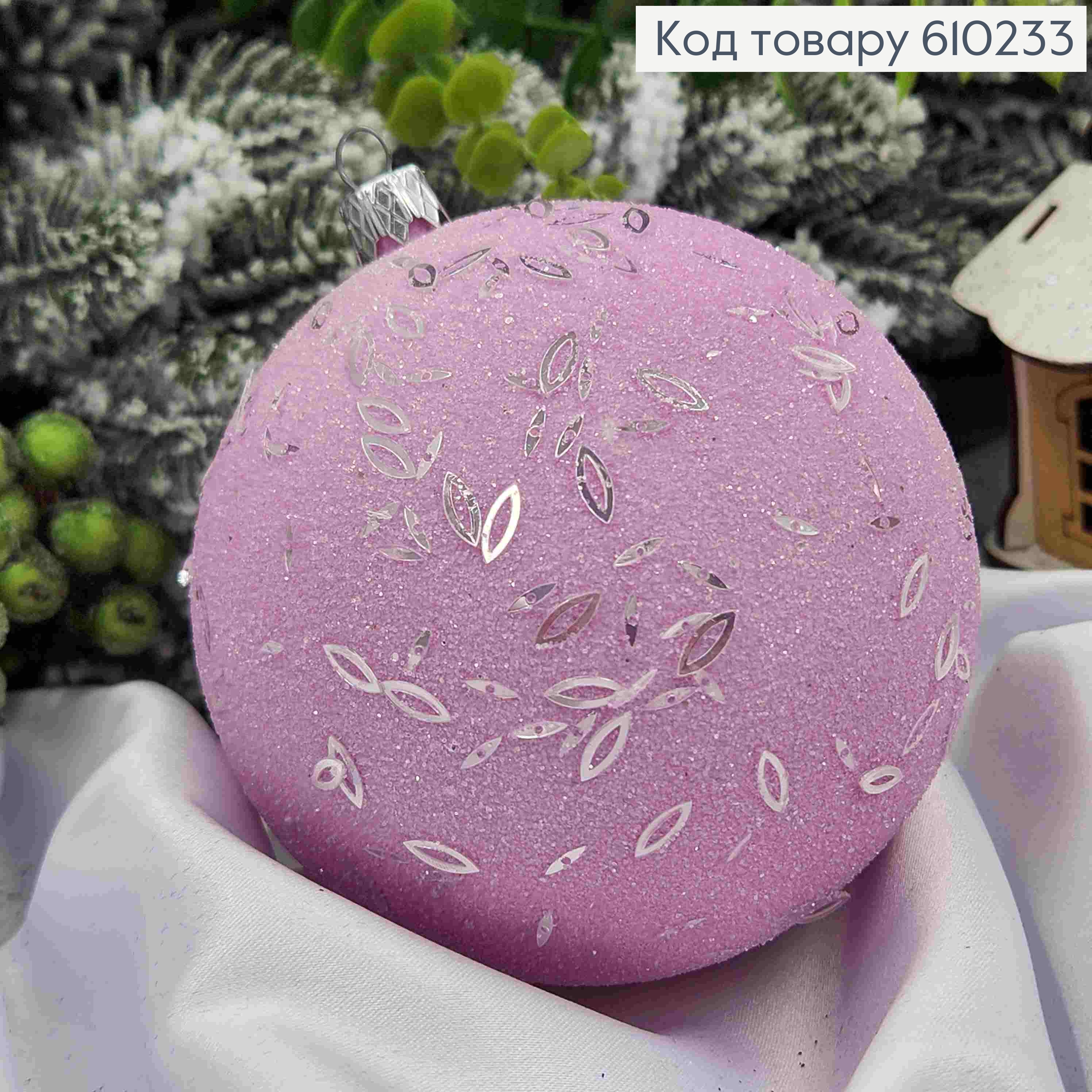 Игрушка шар 100мм "ПАСТЕЛЬ рис", цвет ФИАЛКОВЫЙ, новогоднее украшение пластиковое.