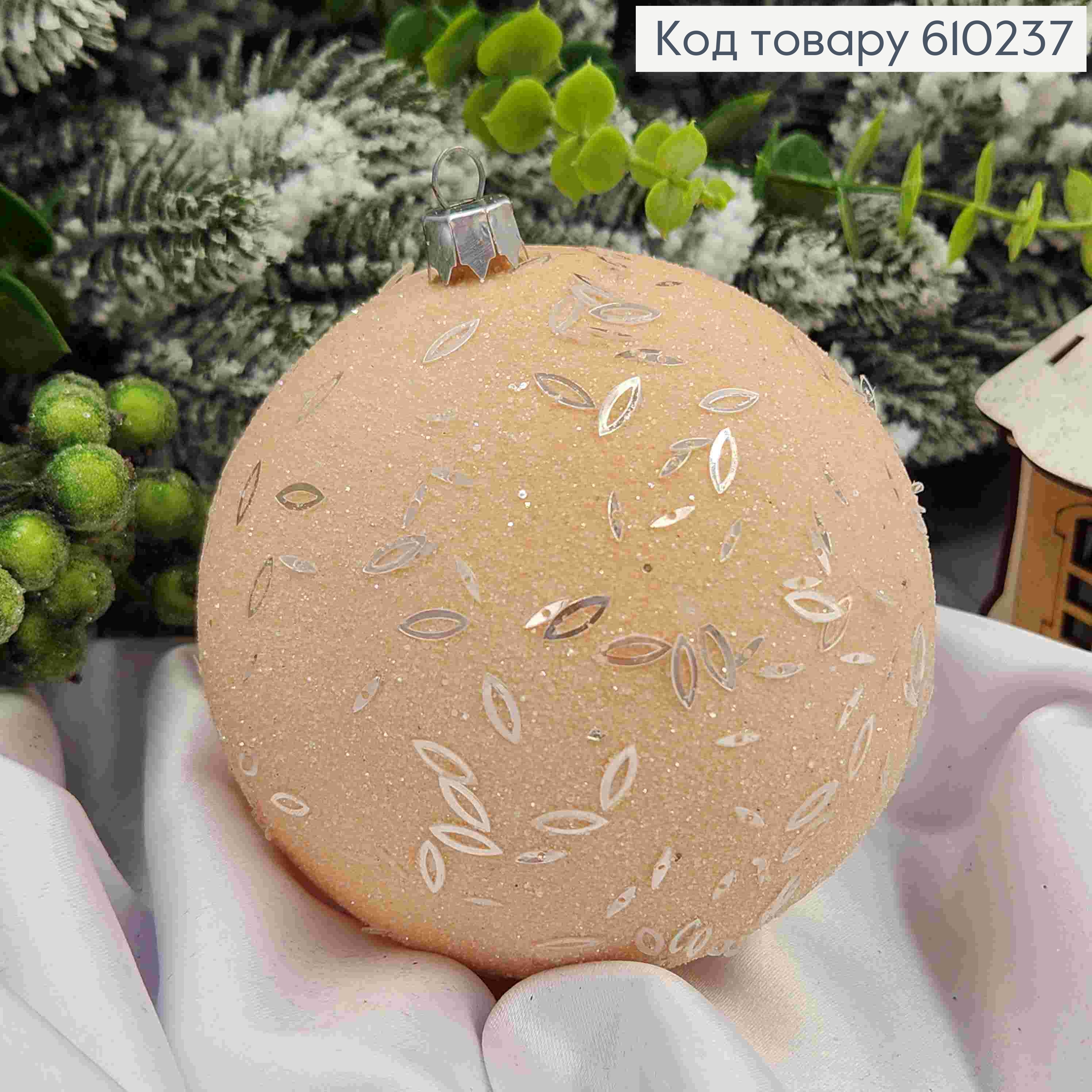 Игрушка шар 100мм "ПАСТЕЛЬ рис",КРЕМОВЫЙ цвет, новогоднее украшение пластик.УКРАИНА