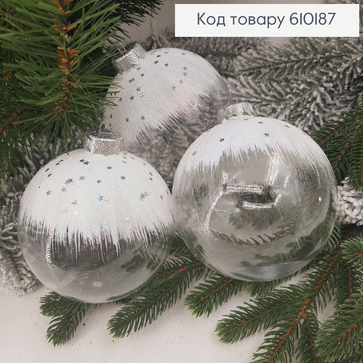 Игрушка шар 100мм Прозрачный с белым узором 3шт/уп.